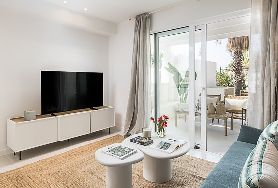 Este luminoso apartamento de un dormitorio se encuentra en Vista Alegre Suites, un exclusivo complejo dentro de la Urbanización Vista Alegre con seguridad 24 horas, en Es Cubells, una de las zonas más bellas del sur de Ibiza. Pensado para estancias medias, es la base ideal para nómadas digitales y profesionales que buscan combinar el trabajo remoto con el estilo de vida de la isla. El apartamento ha sido decorado profesionalmente por nuestro equipo de interiorismo para crear un hogar elega… Leer más
