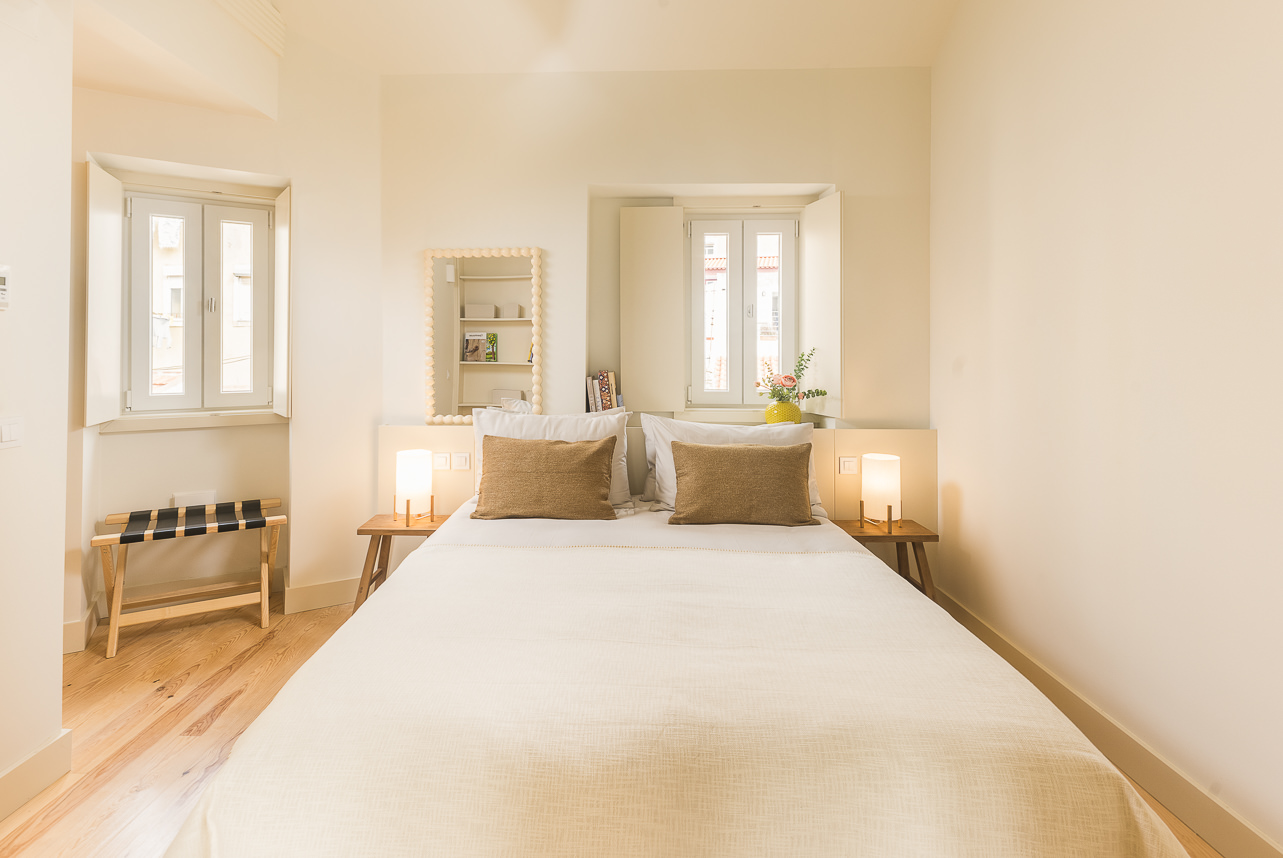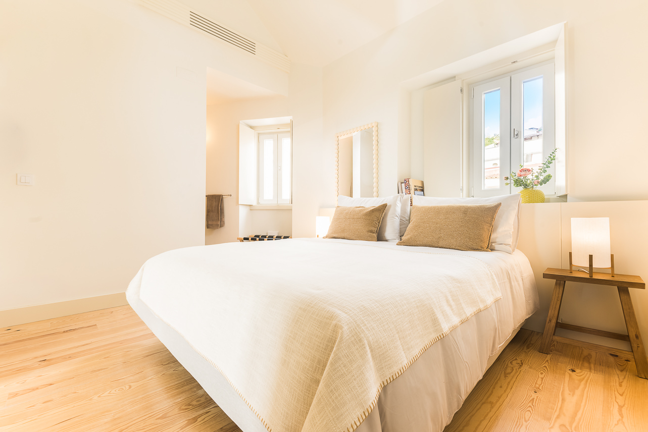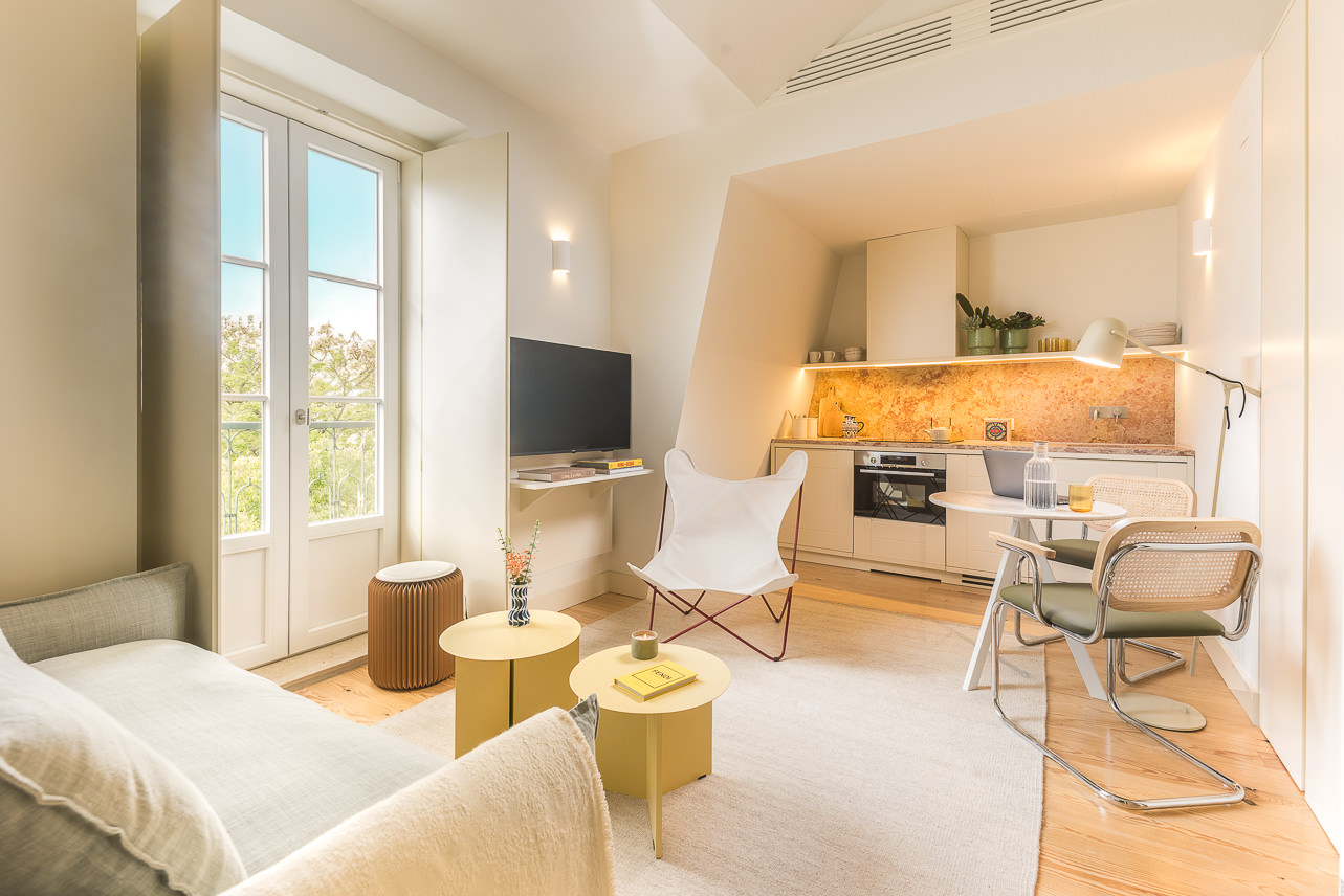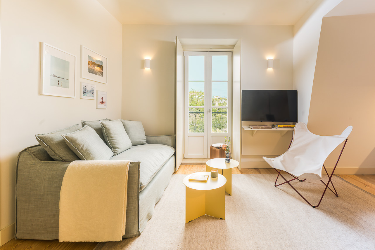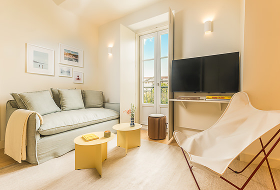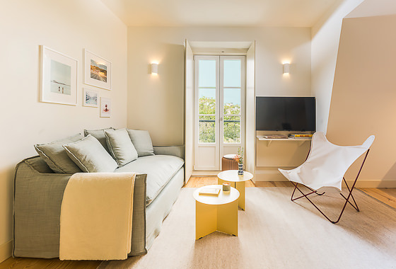 Ubicado en la planta superior de un edificio restaurado único en su tipo, este elegante apartamento de un dormitorio ofrece una experiencia elevada con vistas parciales al emblemático Puente 25 de Abril. Sus materiales de calidad y su abundante luz natural crean un ambiente acogedor. El salón cuenta con mobiliario moderno y un sofá convertible en cama de 1,20 m × 2,00 m. La cocina, acabada en piedra Lioz de Sintra, combina diseño y funcionalidad. El dormitorio, orientado al oeste y s… Leer más