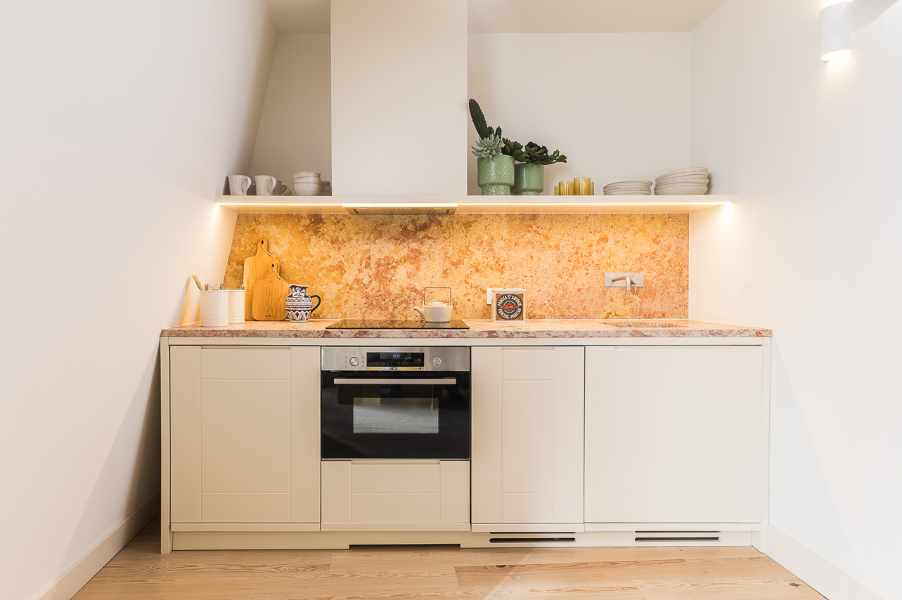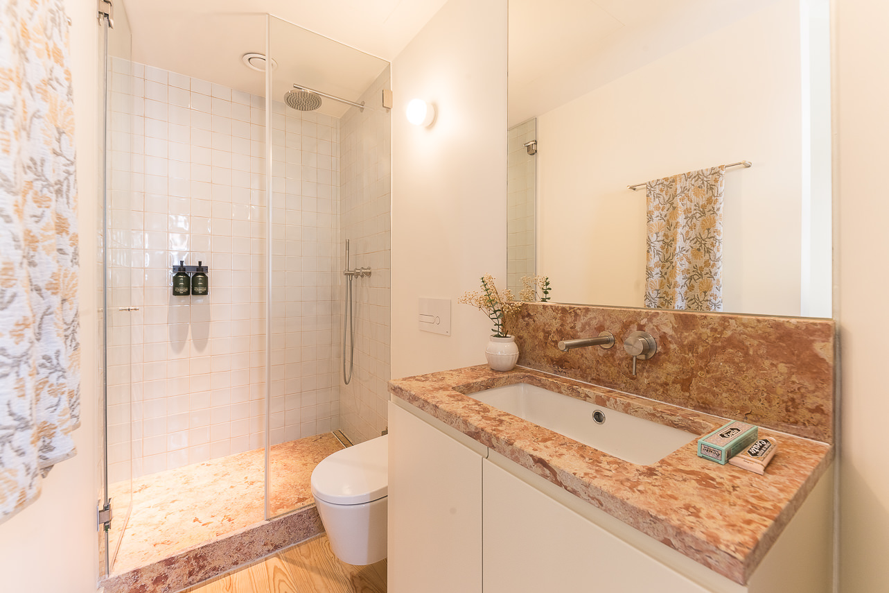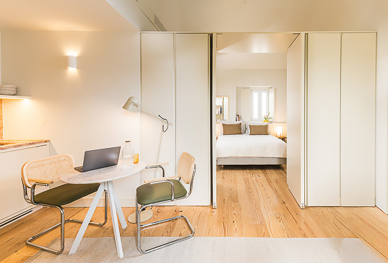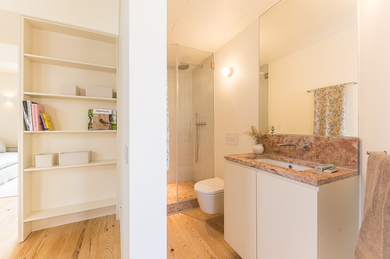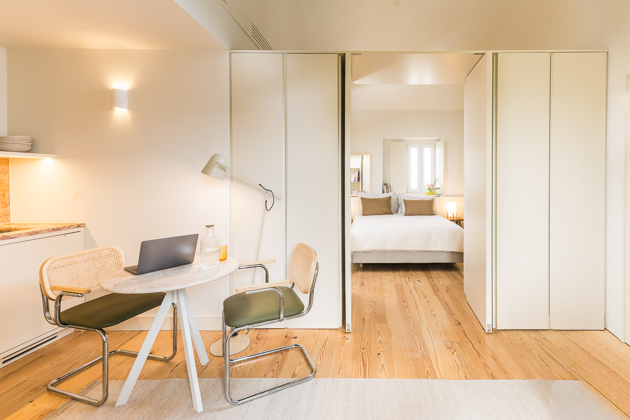 Ubicado en la planta superior de un edificio restaurado único en su tipo, este elegante apartamento de un dormitorio ofrece una experiencia elevada con vistas parciales al emblemático Puente 25 de Abril. Sus materiales de calidad y su abundante luz natural crean un ambiente acogedor. El salón cuenta con mobiliario moderno y un sofá convertible en cama de 1,20 m × 2,00 m. La cocina, acabada en piedra Lioz de Sintra, combina diseño y funcionalidad. El dormitorio, orientado al oeste y s… Leer más