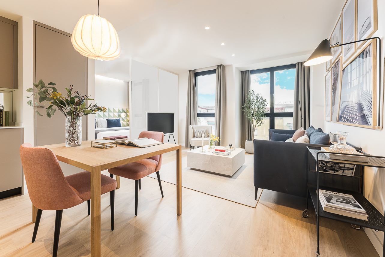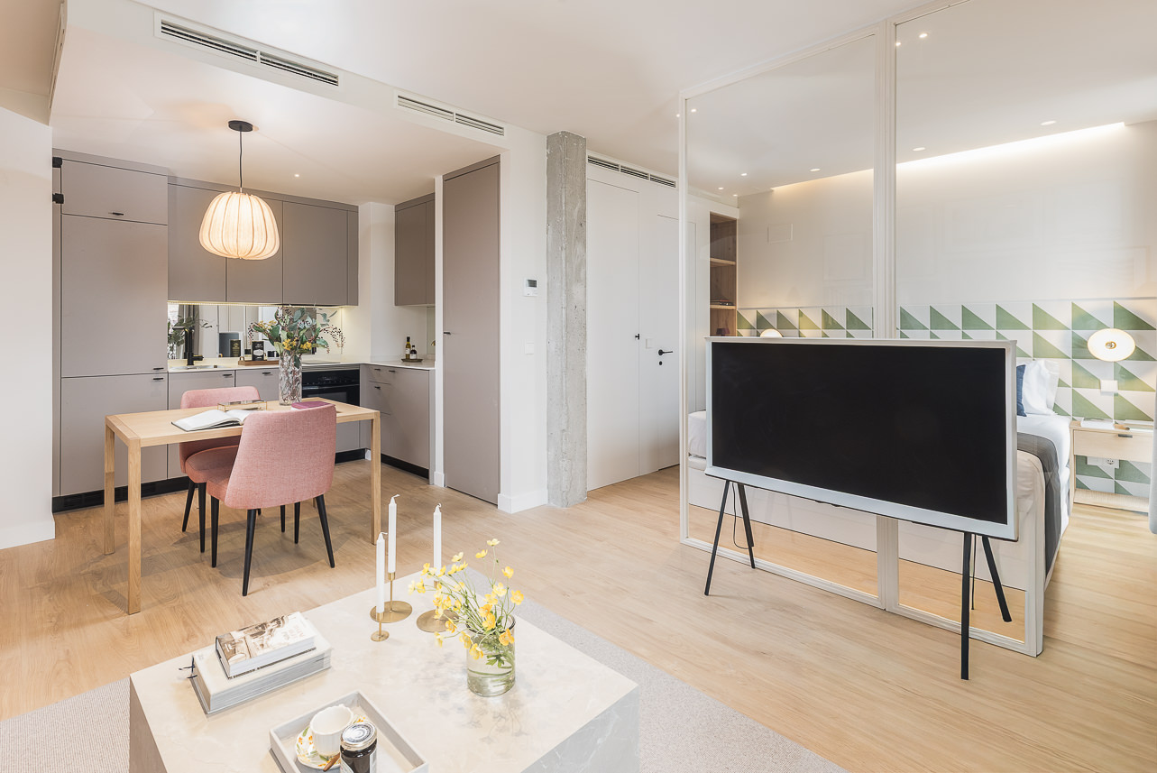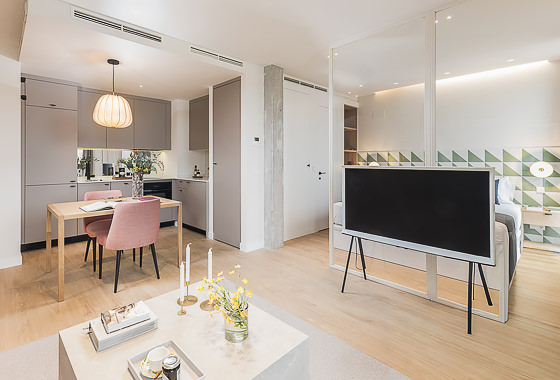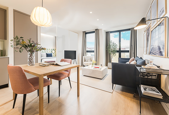 This flat is located in the Living Colomer building on Calle Colomer, in the La Guindalera neighbourhood, within Madrid’s Salamanca district, very close to the Plaza de Toros de Las Ventas. The building offers communal areas designed for the community, such as a coffee and snack area at the entrance, a lounge with sofas and tables, an outdoor garden, a mini-cinema or events room, and an English-style courtyard, all of which can be booked for private use. The swimming pool will be available dur… Read more