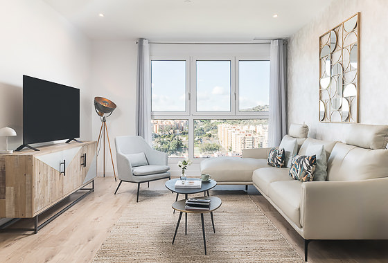 Located in the modern and iconic Torre Martiricos, this exclusive apartment in Málaga offers a unique experience thanks to its exceptional amenities. The building features a rooftop pool with panoramic views of the sea and the city, a fully equipped gym, coworking areas, a private cinema, and relaxation spaces designed to enjoy the Mediterranean lifestyle. The bright and sophisticated apartment combines contemporary design with functionality. The living room, with floor-to-ceiling windows, f… Read more