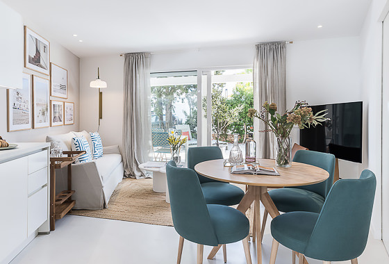 This bright one-bedroom apartment is located in Vista Alegre Suites, an exclusive complex within the Vista Alegre gated community with 24-hour security in Es Cubells, one of the most privileged areas in the south of Ibiza. Available for monthly rentals, it is the perfect choice for those seeking a comfortable and functional stay on the island, combining professional life with the Mediterranean lifestyle. The interior, fully decorated by the Homeclub design team, blends contemporary style with… Read more