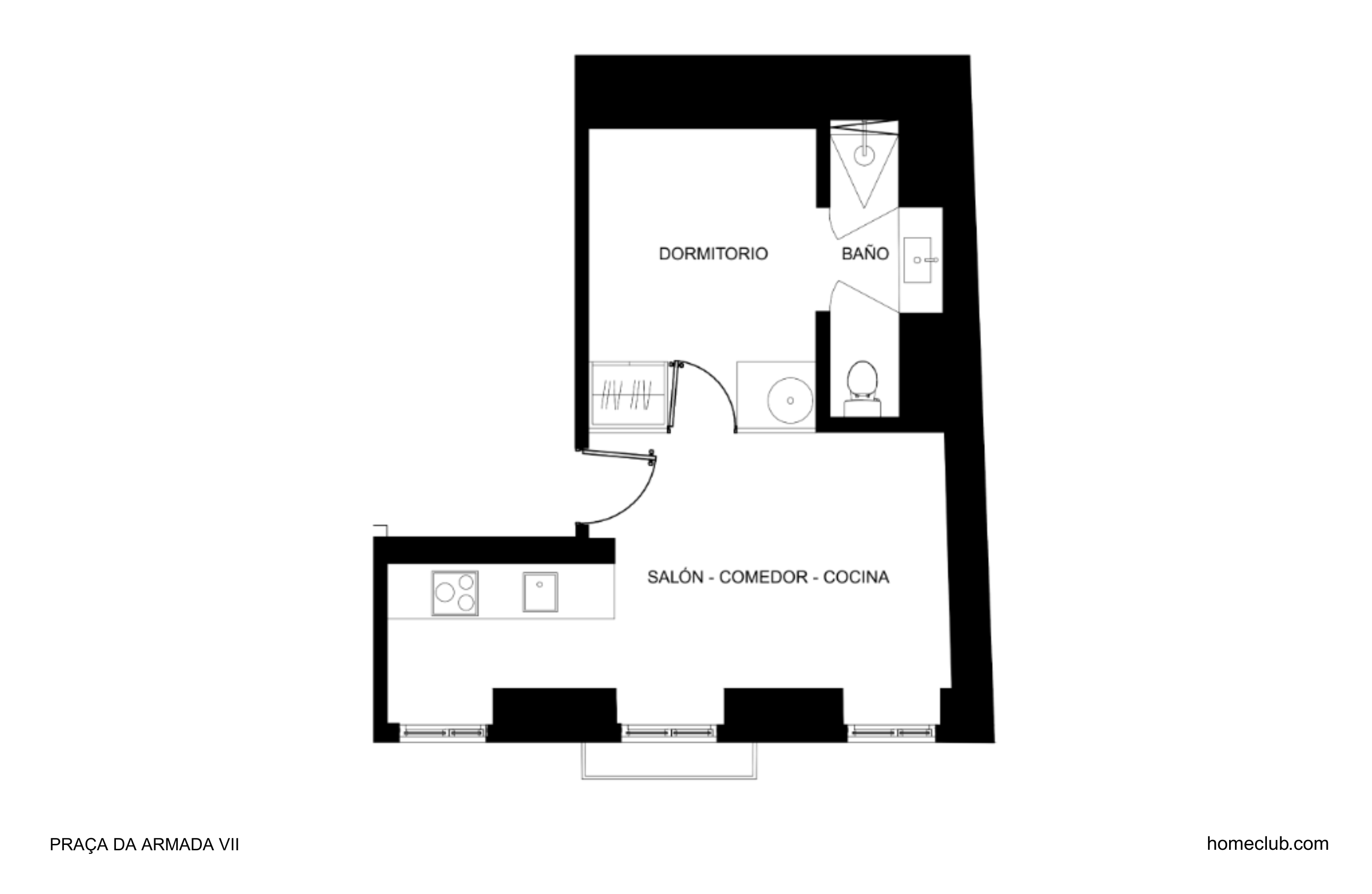 This elegant one-bedroom apartment is located on the second floor of a fully renovated boutique building, completed in 2025 and managed by Homeclub. With three balconies overlooking the street, the apartment enjoys exceptional natural light throughout the day and a direct connection to the lively atmosphere of Praça da Armada. The living area features high ceilings and a clean, contemporary design. The kitchen and living room are separated, ideal for guests who prefer more defined spaces. Th… Read more