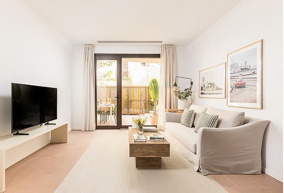 Located on the ground floor of Oasis Rambla, in the Passatge d’Elisabets building —a fully renovated development managed by Homeclub— this two-bedroom apartment offers a contemporary design concept with refined finishes and well-defined spaces. Completed in 2025 and designed for mid-term stays, it forms part of a residential complex that elevates everyday living through premium shared amenities: a Technogym-equipped gym, coworking areas, landscaped interior courtyards, and a rooftop terrac… Read more