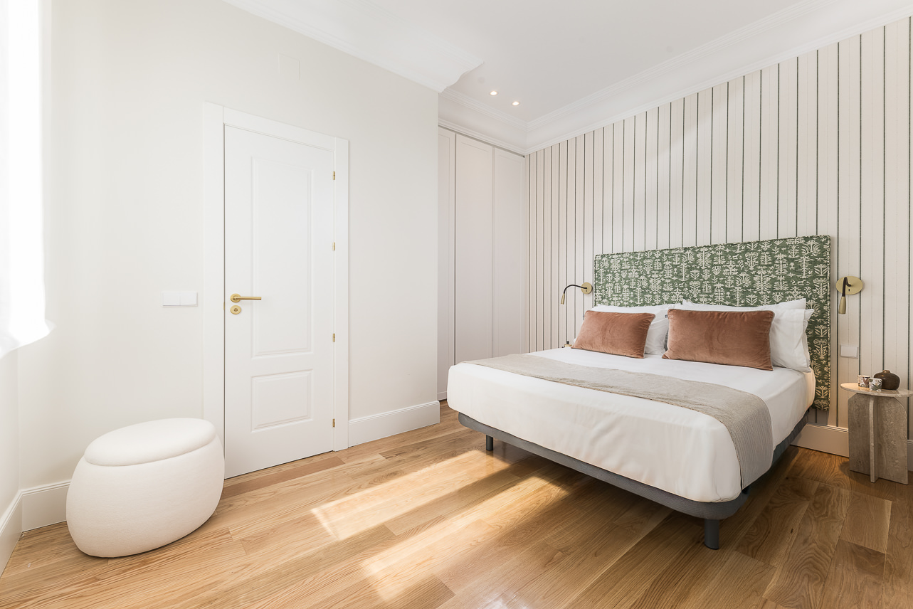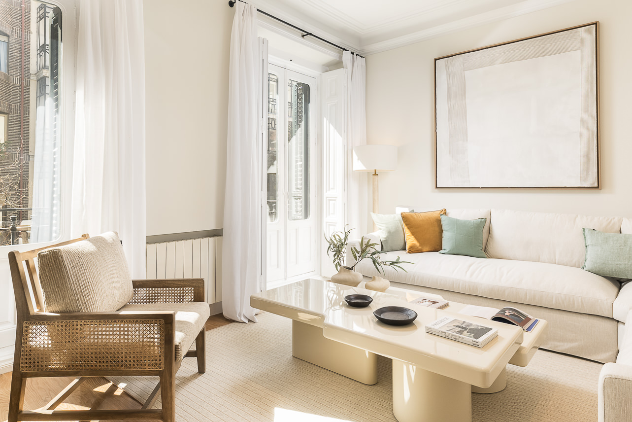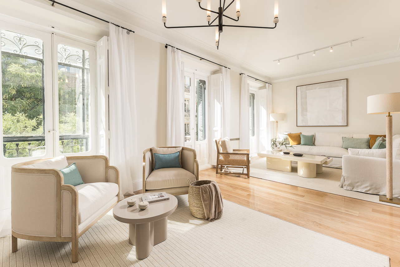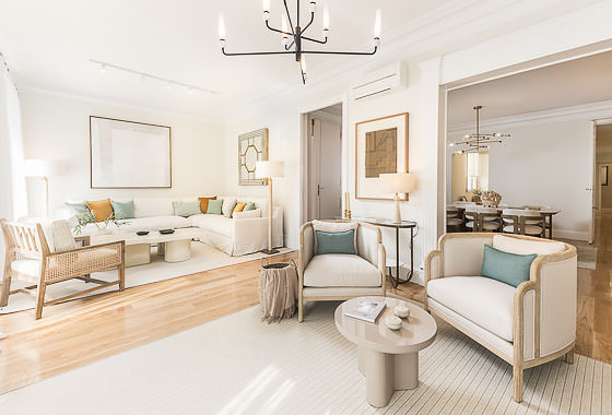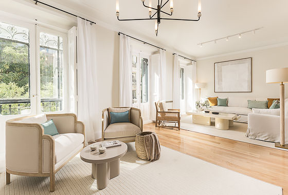 Located in a distinguished building in the heart of the Salamanca district, this high-floor, three-bedroom apartment blends the charm of classic Madrid architecture with a refined, contemporary interior style. High ceilings with mouldings, restored original woodwork, and large windows define a bright, welcoming space—ideal for those who value the balance between tradition and sophistication. The overall atmosphere is serene, with a neutral palette and a layout that enhances both spaciousness and functionality.