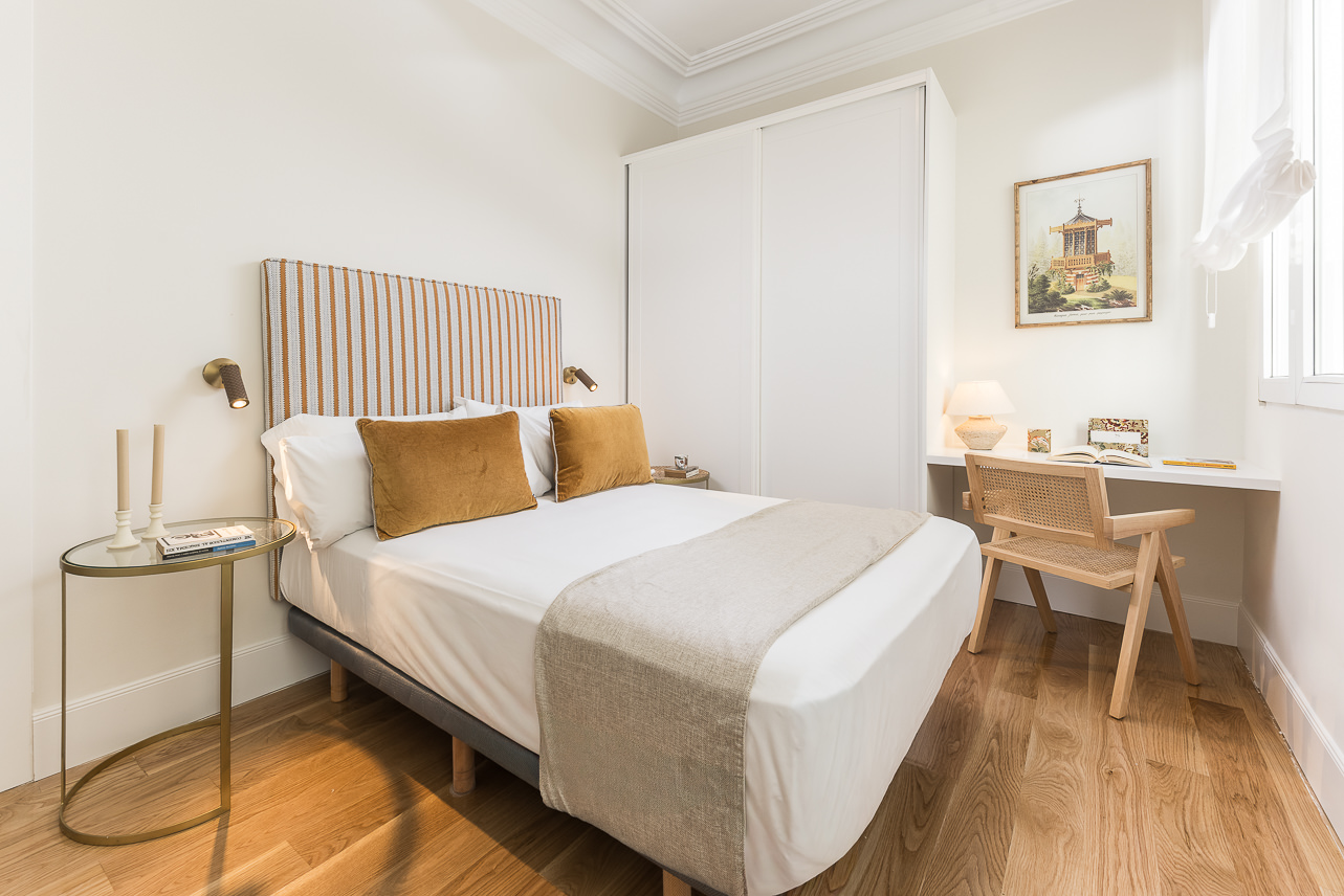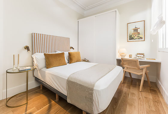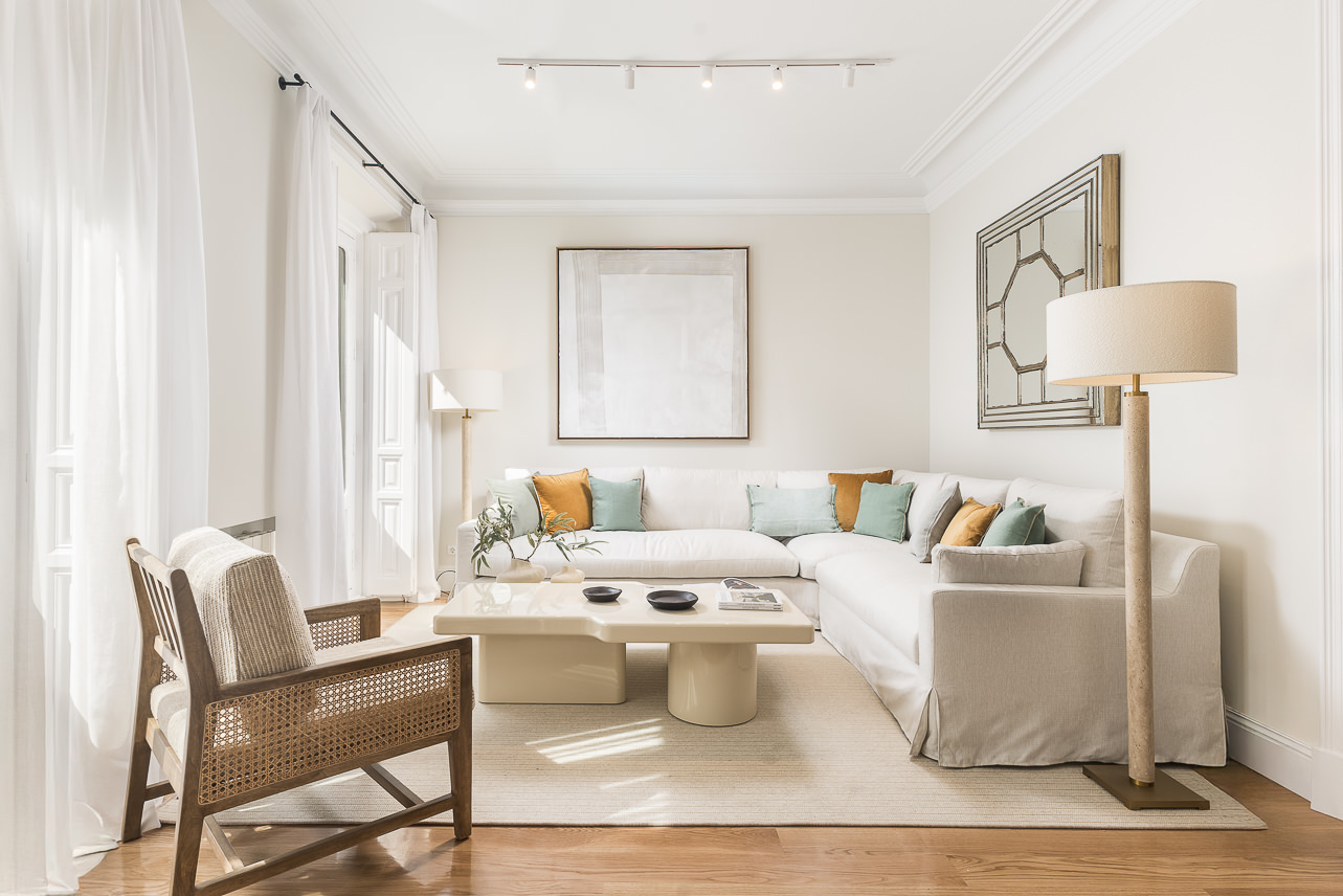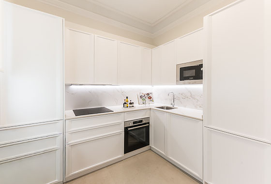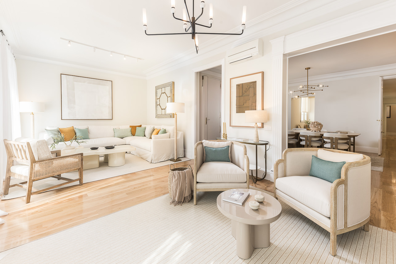 Located in a distinguished building in the heart of the Salamanca district, this high-floor, three-bedroom apartment blends the charm of classic Madrid architecture with a refined, contemporary interior style. High ceilings with mouldings, restored original woodwork, and large windows define a bright, welcoming space—ideal for those who value the balance between tradition and sophistication. The overall atmosphere is serene, with a neutral palette and a layout that enhances both spaciousness and functionality.