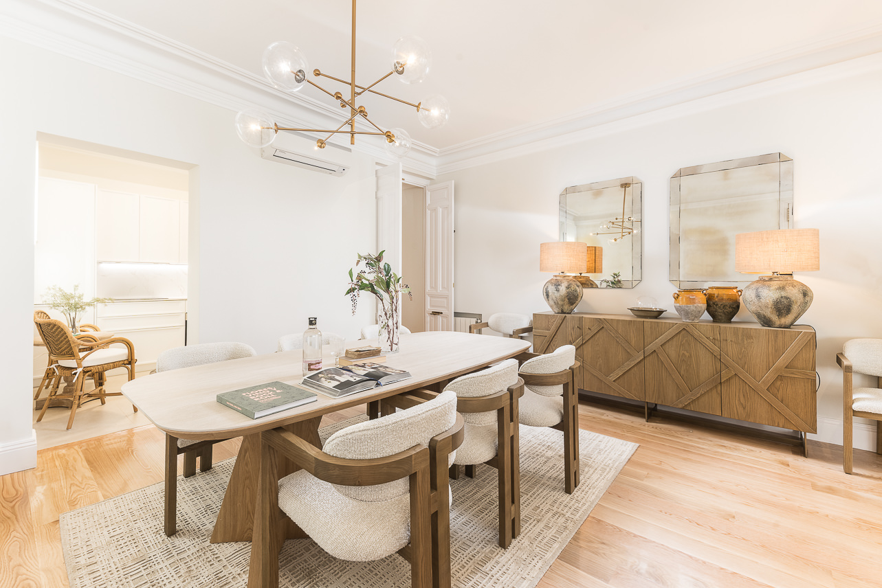 Set on Hermosilla Street—one of the most sought-after avenues in the Salamanca district—this apartment is perfectly positioned in Madrid’s most exclusive residential area. Surrounded by designer boutiques, renowned restaurants, art galleries, and essential services, it also boasts excellent transport links. A privileged address for those looking to live in style in the city’s most prestigious neighborhood.Located in a distinguished building in the heart of the Salamanca district, this high-floor, three-bedroom apartment blends the charm of classic Madrid architecture with a refined, contemporary interior style. High ceilings with mouldings, restored original woodwork, and large windows define a bright, welcoming space—ideal for those who value the balance between tradition and sophistication. The overall atmosphere is serene, with a neutral palette and a layout that enhances both spaciousness and functionality.