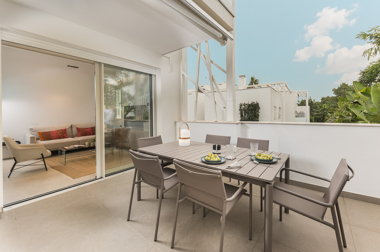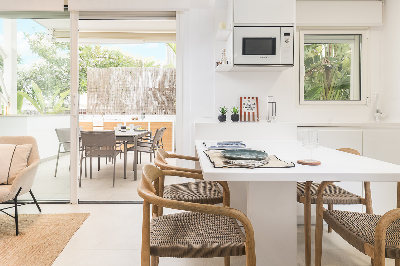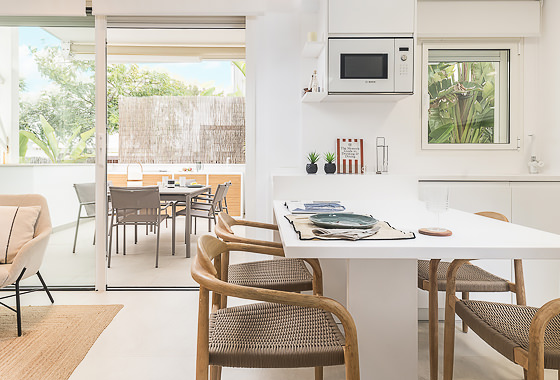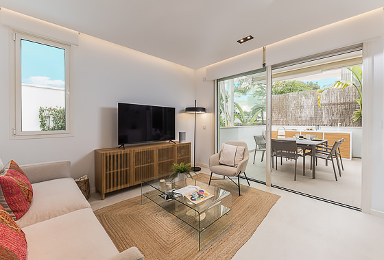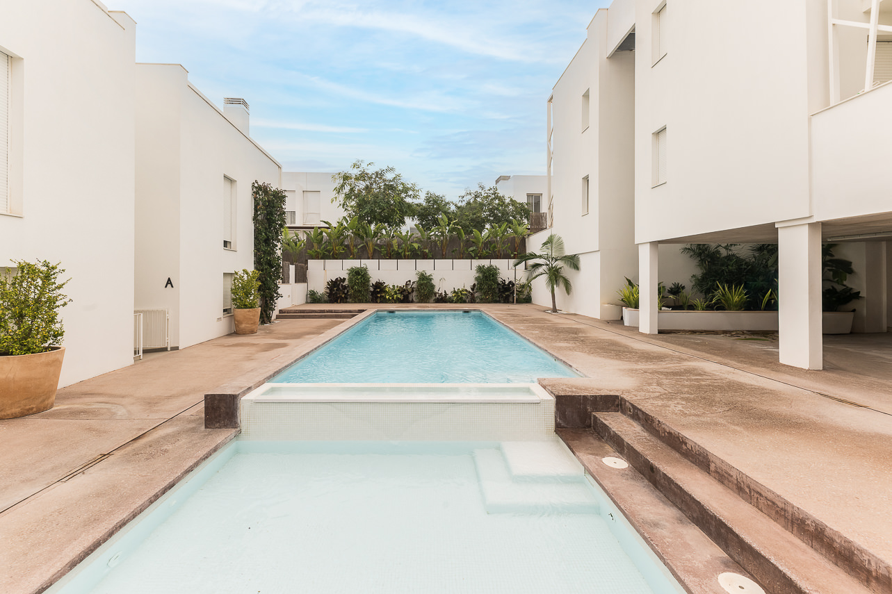 This bright ground-floor apartment with a private garden is part of a well-maintained residential complex in one of Ibiza’s most peaceful and sought-after areas. Surrounded by Mediterranean greenery and with direct access to communal amenities such as a swimming pool and gym, the property offers a lifestyle of comfort, wellbeing, and privacy—ideal as a primary residence or for seasonal getaways. The interior stands out for its serene and light-filled atmosphere, enhanced by large windows… Read more