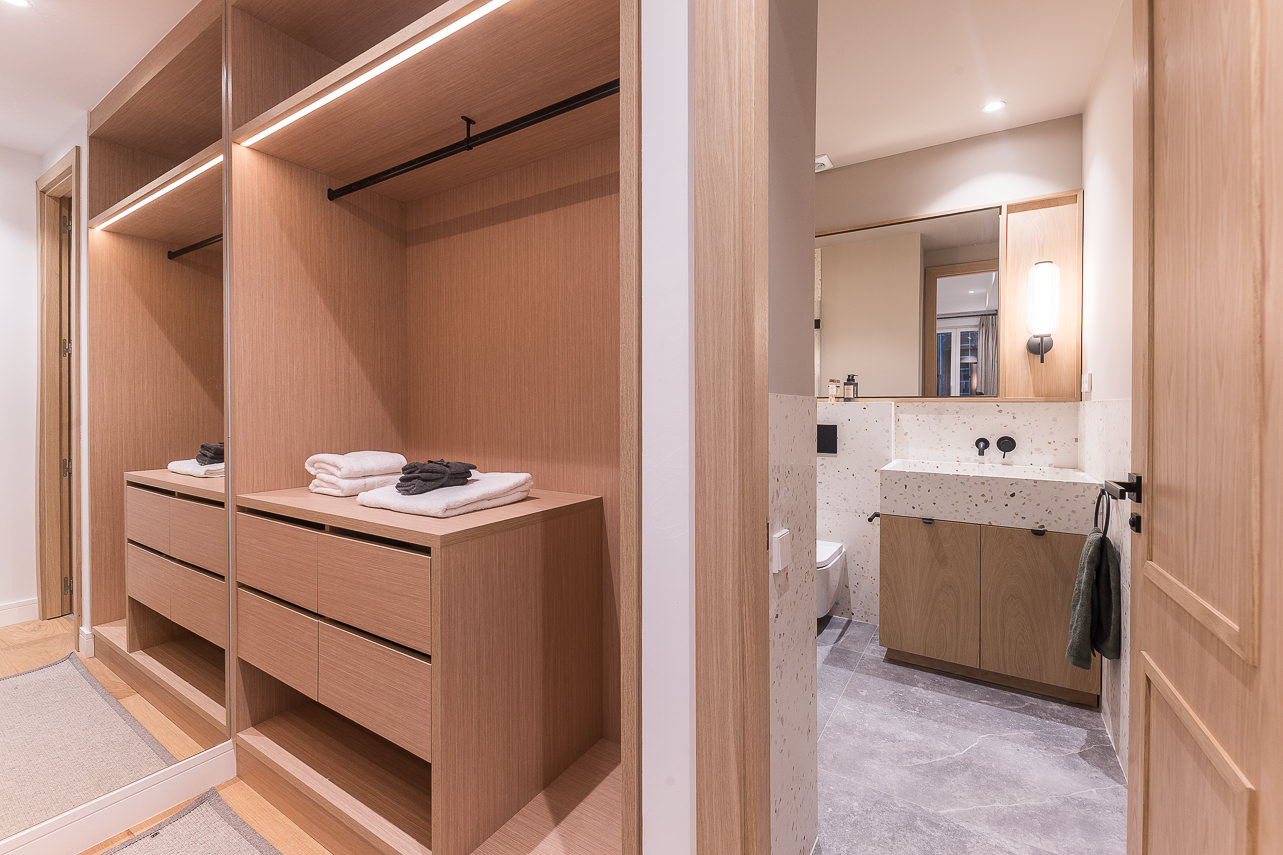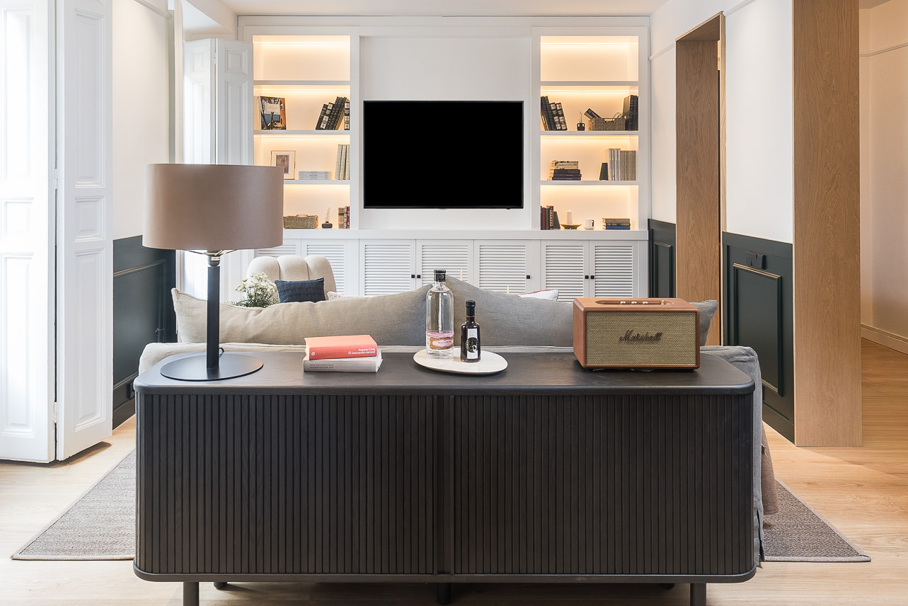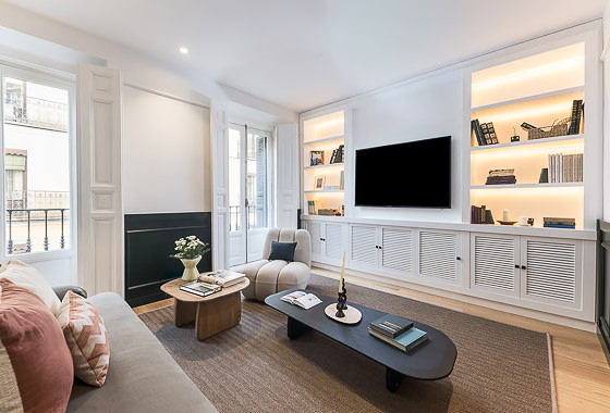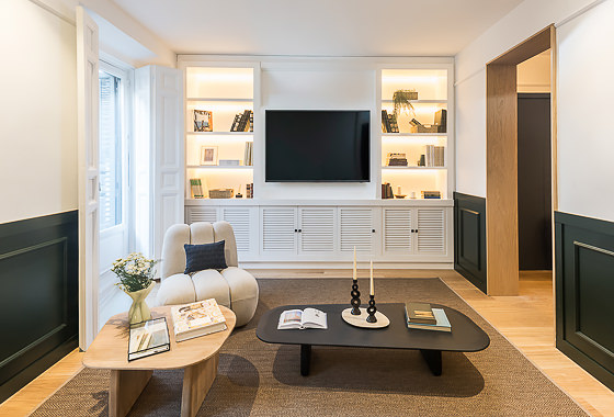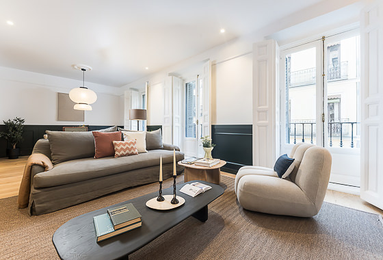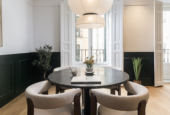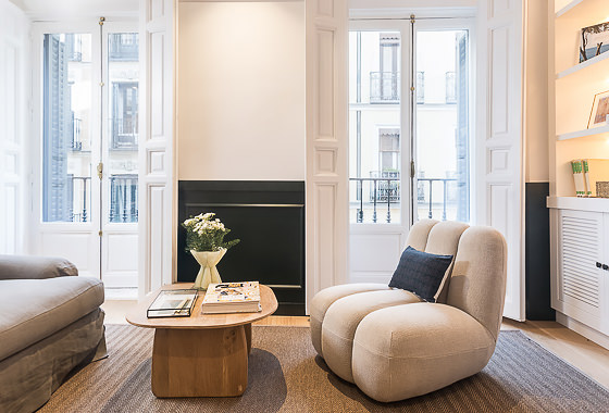 Located on ground floor of a classic Madrid building with exposed brick façade and wrought iron balconies, this elegant 100?m² apartment combines the charm of traditional architecture with a sophisticated, contemporary interior. It preserves the essence of the stately homes typical of the Chamberí district, featuring high ceilings, large windows, and street-facing balconies that bring in natural light and character. The apartment has been fully renovated and furnished by the Homeclub desig… Read more