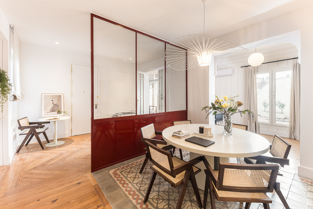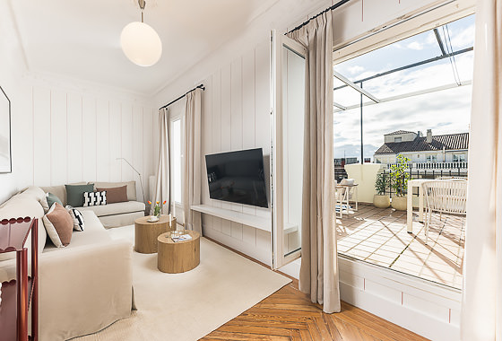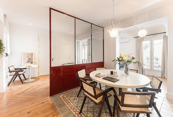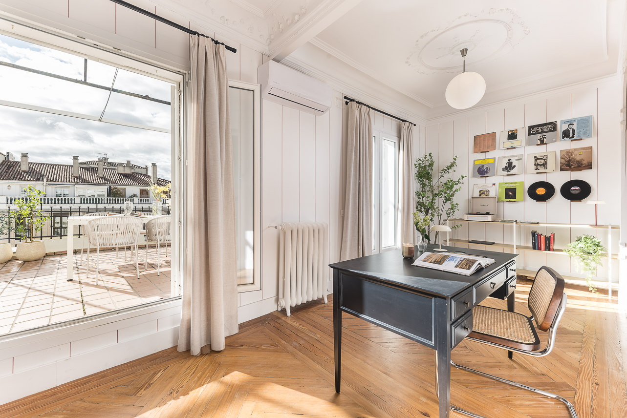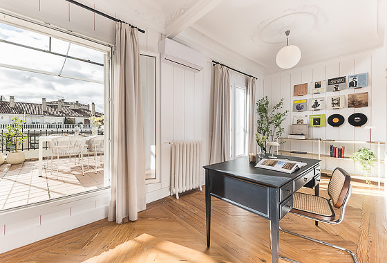 Located on one of Madrid’s most iconic addresses, the prestigious Calle Génova, this 185?m² penthouse perfectly blends the charm of classic materials with a high-end contemporary renovation. Fully decorated by the Homeclub interior design team, the property stands out for its spacious layout, elegant distribution, and the harmonious coexistence of restored original features—such as hydraulic tile floors and the wooden carpentry in the living room—with top-quality modern finishes. Upon… Read more