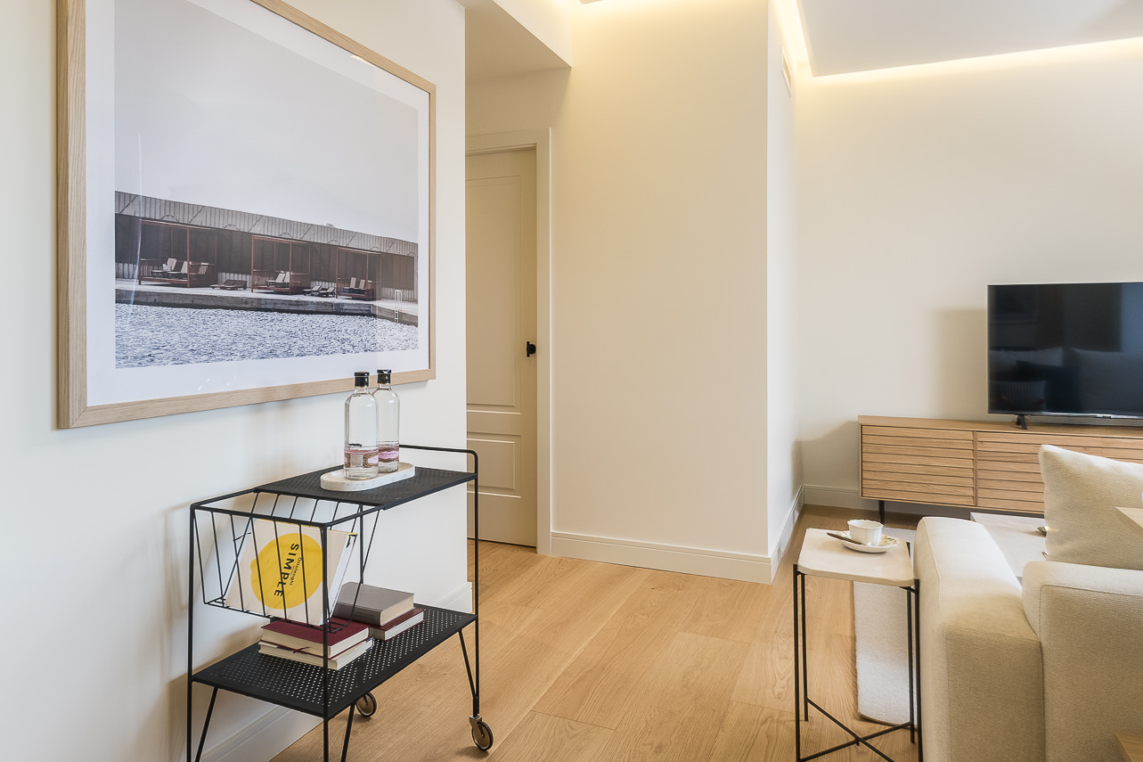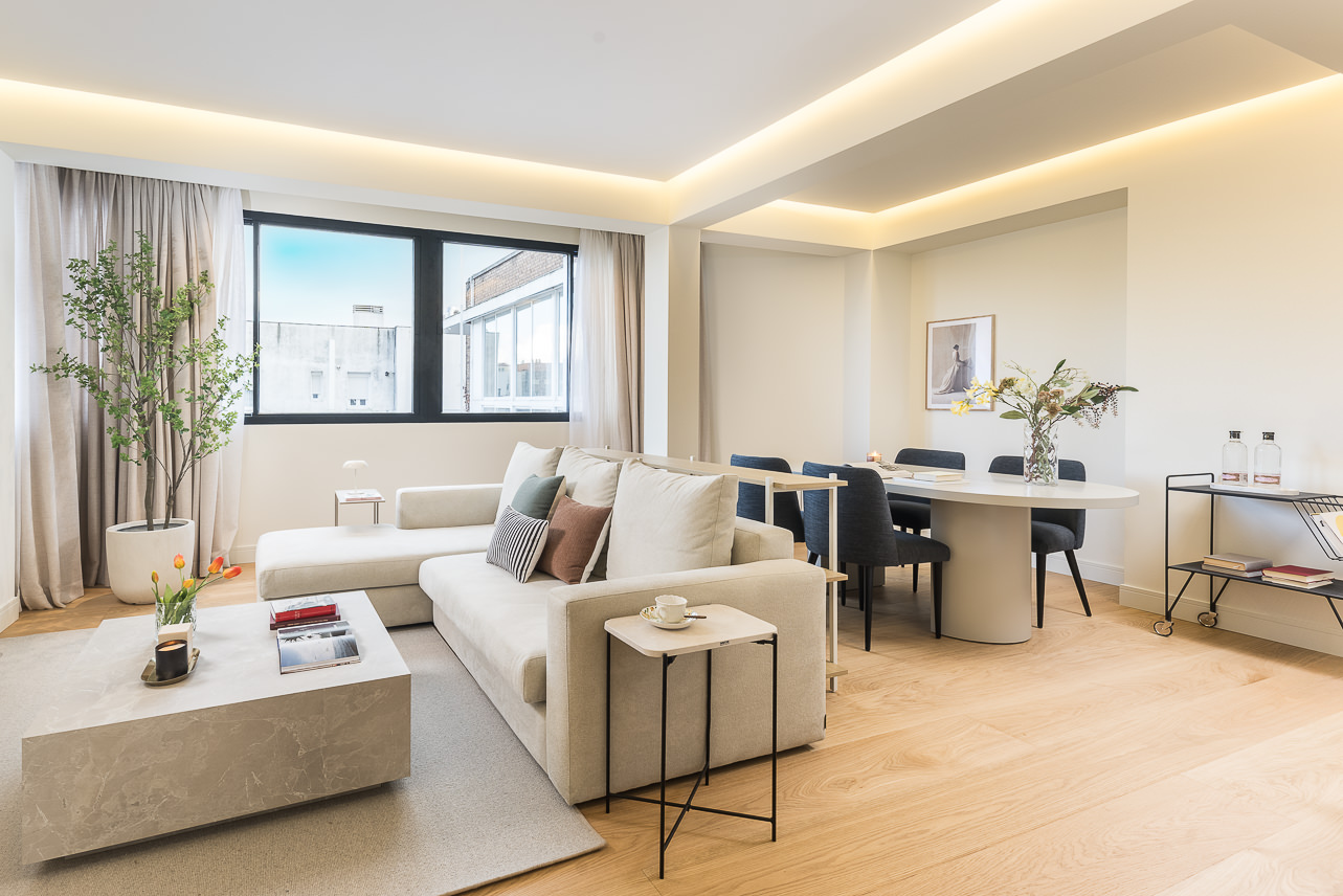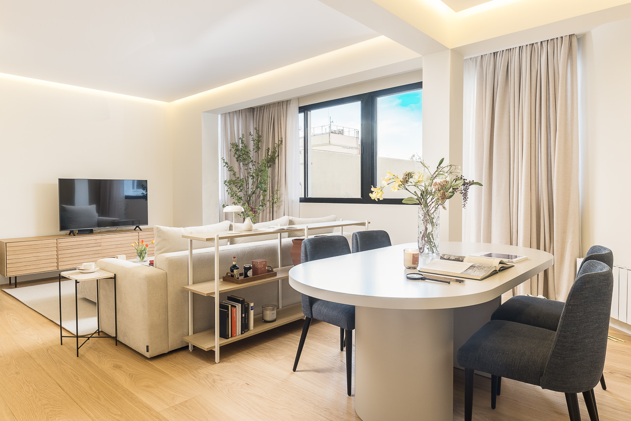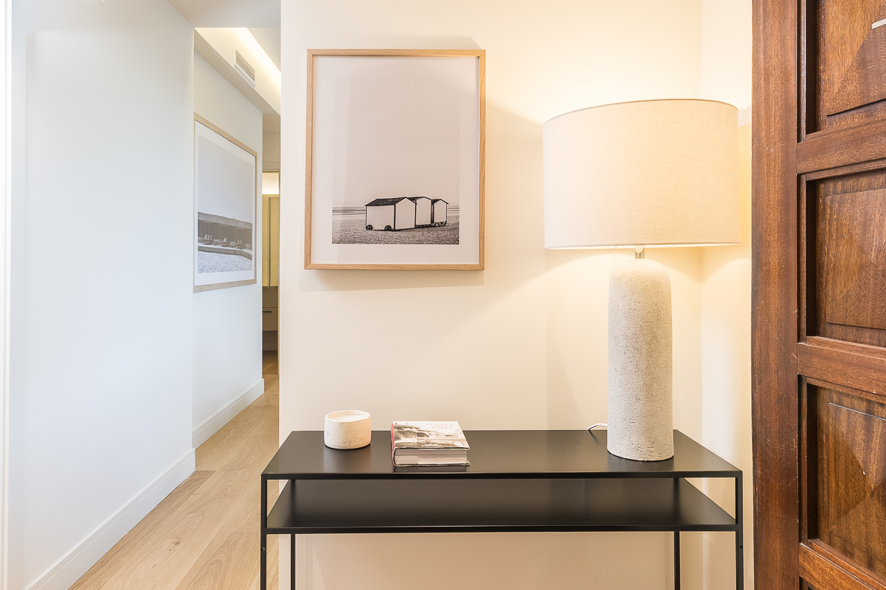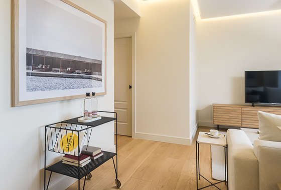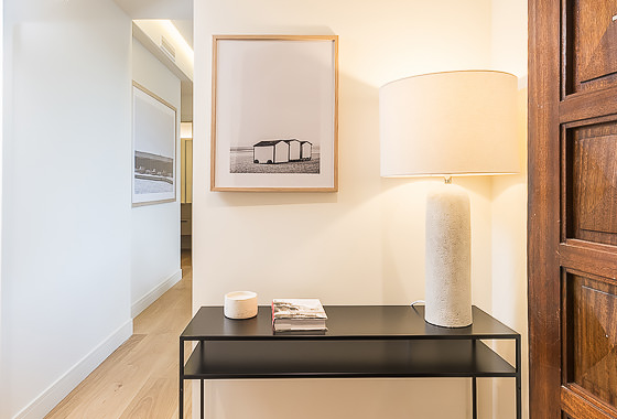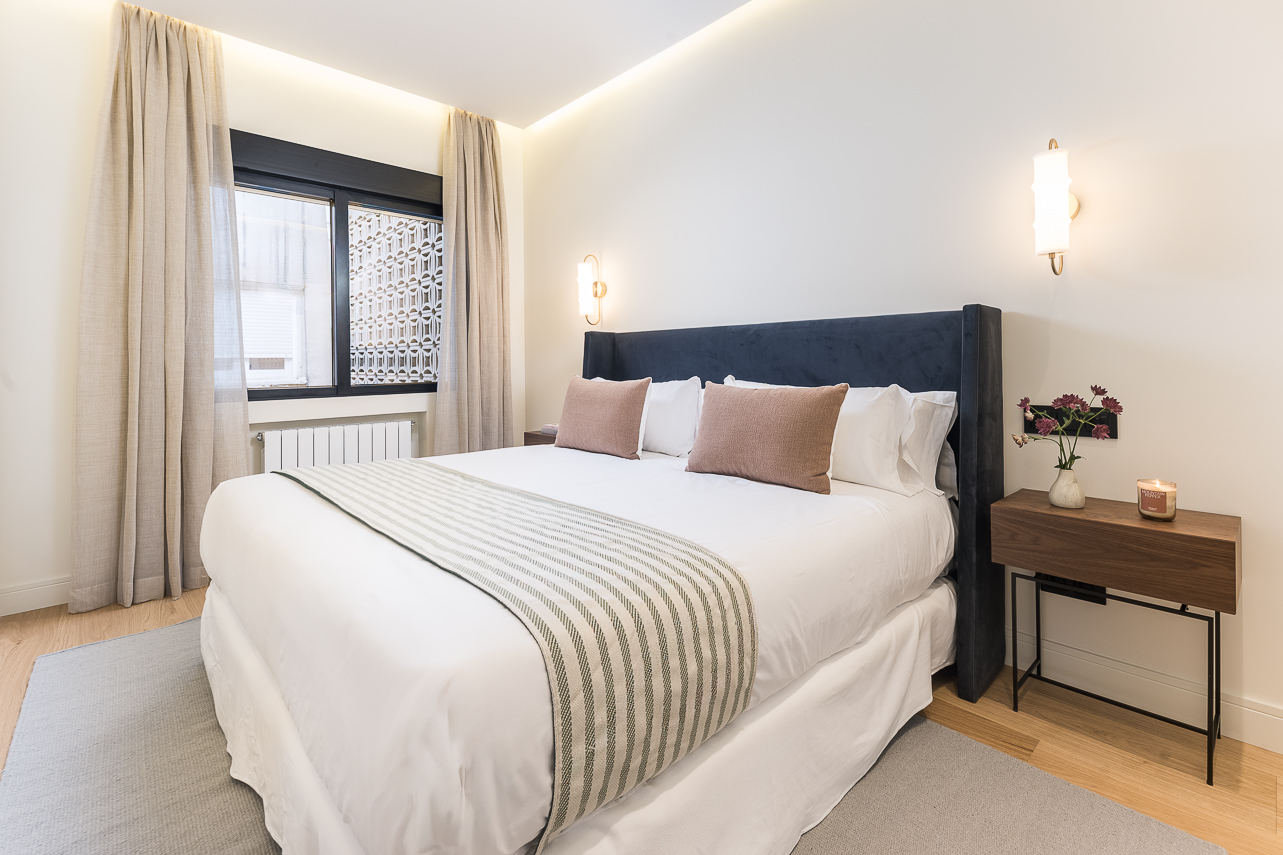 Located on a high floor of a stately building on the exclusive Calle Villanueva, this elegant 90 m² apartment for rent in Recoletos stands out for its functional design, high-quality finishes, and meticulous decoration, carried out by the Homeclub interior design team. The apartment has two bedrooms, two full bathrooms, a bright living-dining room, and a semi-open kitchen, creating a contemporary, comfortable, and sophisticated living space. The master bedroom has a king-size bed, built-in w… Read more