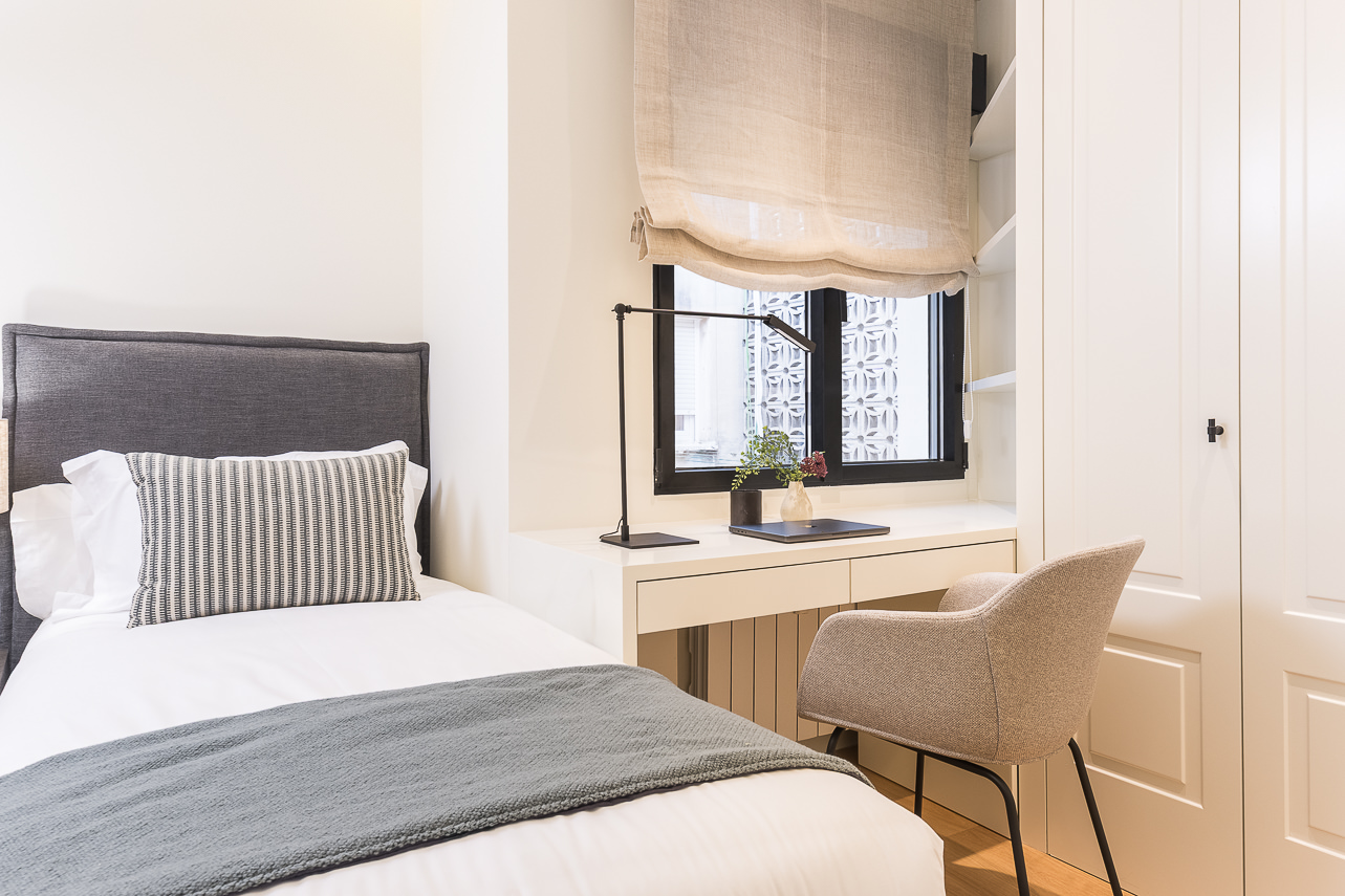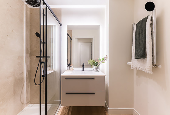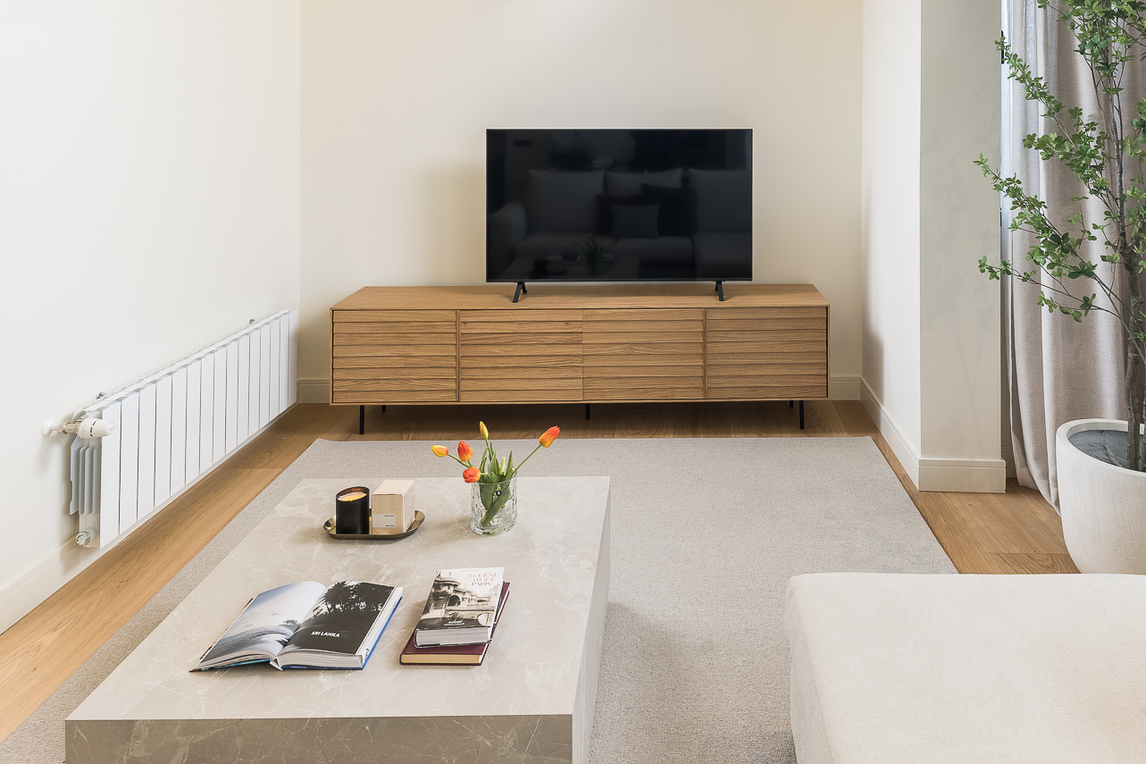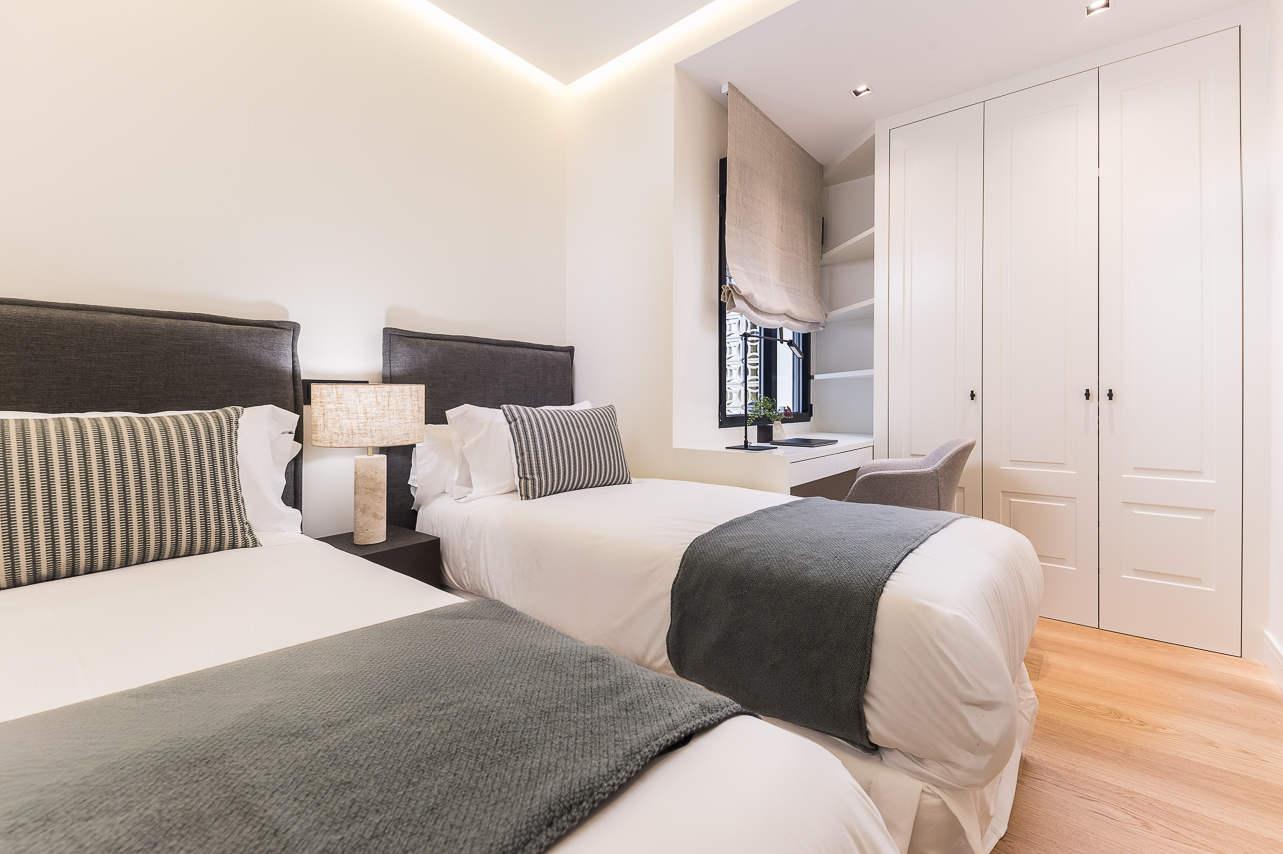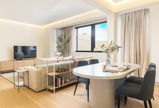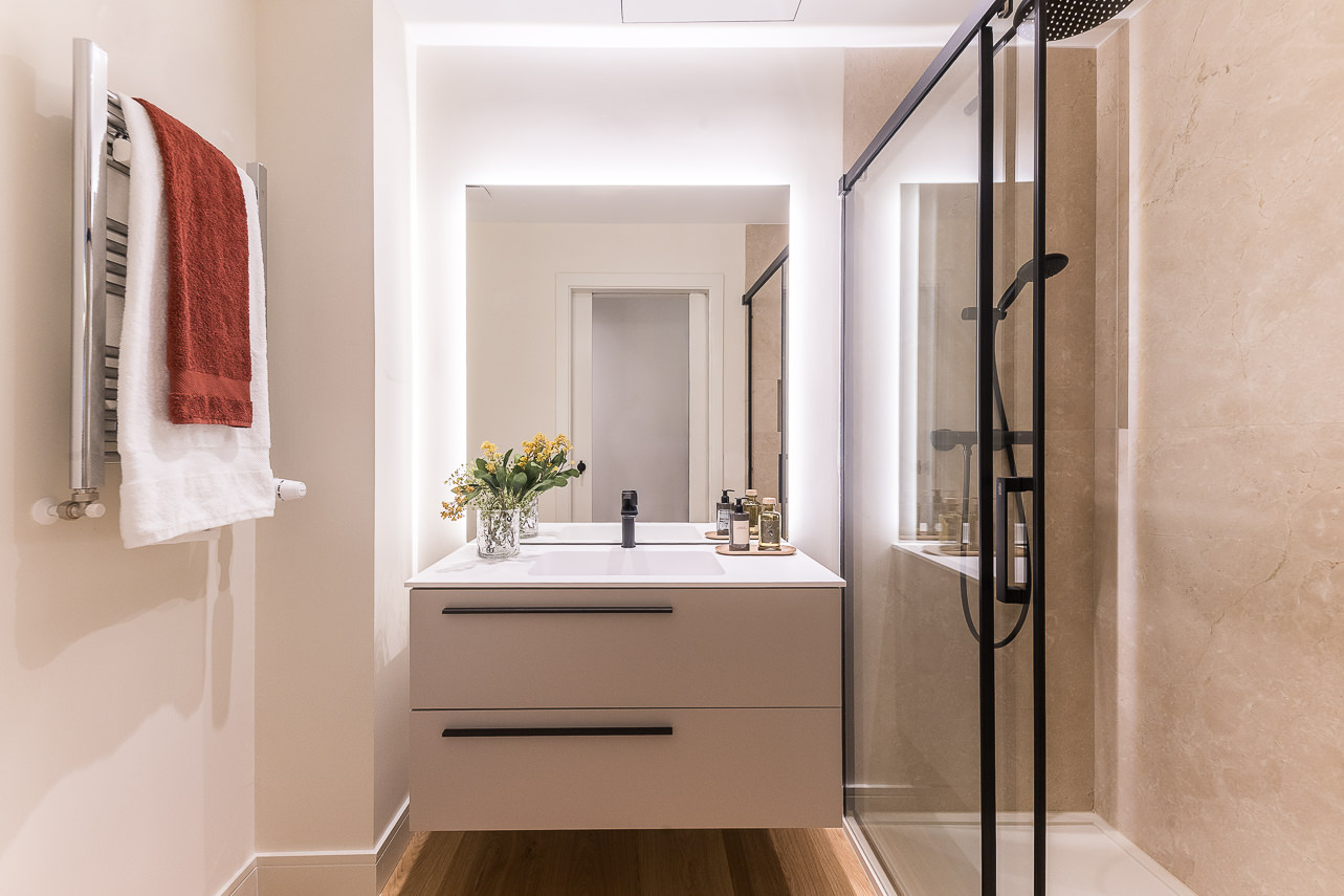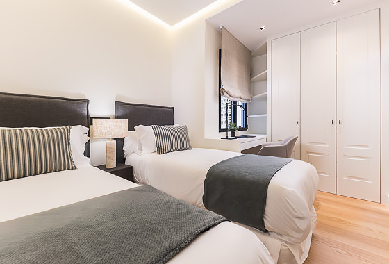 Located on a high floor of a stately building on the exclusive Calle Villanueva, this elegant 90 m² apartment for rent in Recoletos stands out for its functional design, high-quality finishes, and meticulous decoration, carried out by the Homeclub interior design team. The apartment has two bedrooms, two full bathrooms, a bright living-dining room, and a semi-open kitchen, creating a contemporary, comfortable, and sophisticated living space. The master bedroom has a king-size bed, built-in w… Read more