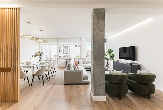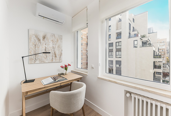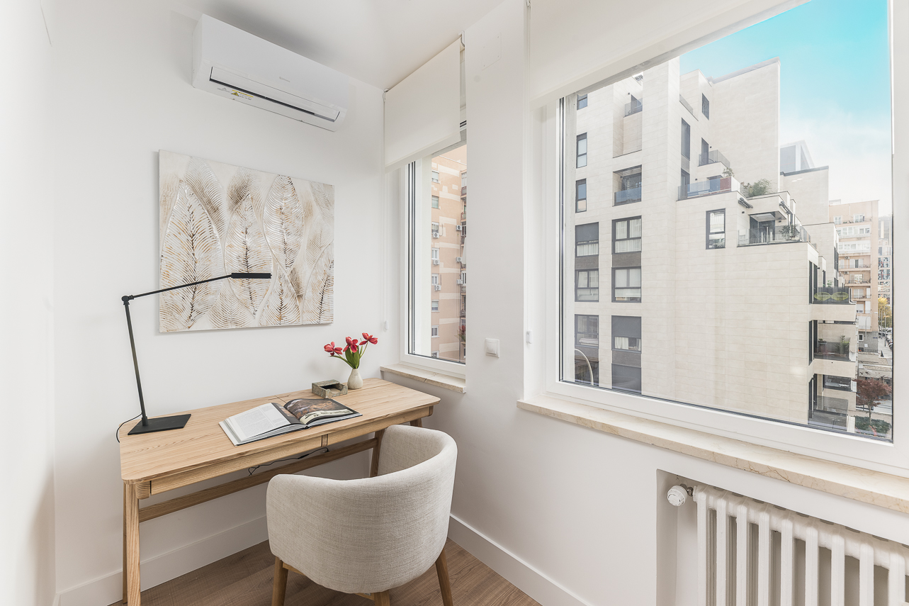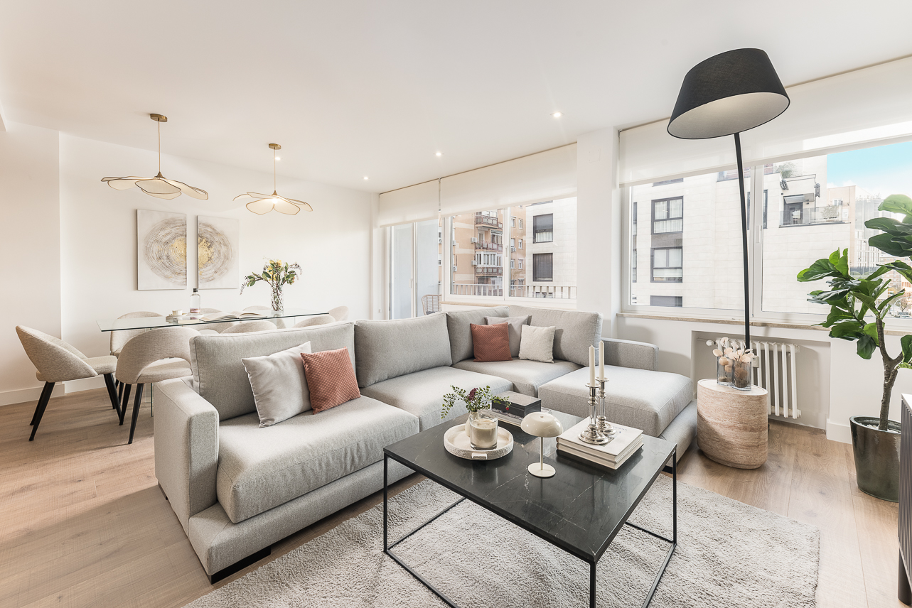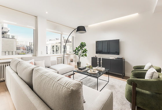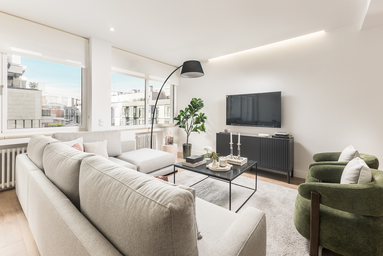 Located on a high floor along one of Madrid’s most iconic avenues, this 180 m² residence combines contemporary design, abundant natural light, and exceptional comfort. With four double bedrooms—each with its own en-suite bathroom—and a guest toilet, the layout has been carefully designed to offer privacy, functionality, and elegance, ideal for families or executives seeking both style and comfort. The clean-lined living-dining area stands out for its spaciousness and brightness, featur… Read more