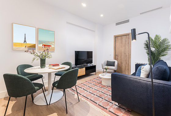 This modern and comfortable apartment features a spacious communal rooftop terrace, perfect for enjoying with family and friends. You'll be just a five-minute walk from the iconic El Retiro Park, where you can enjoy a leisurely stroll around the lake or a quick visit to the Crystal Palace and the Rose Garden. Crossing the park, you'll find some of the city's best museums, including the famous Prado Museum and the Thyssen-Bornemisza. Our interior designers have created this space with great a… Read more