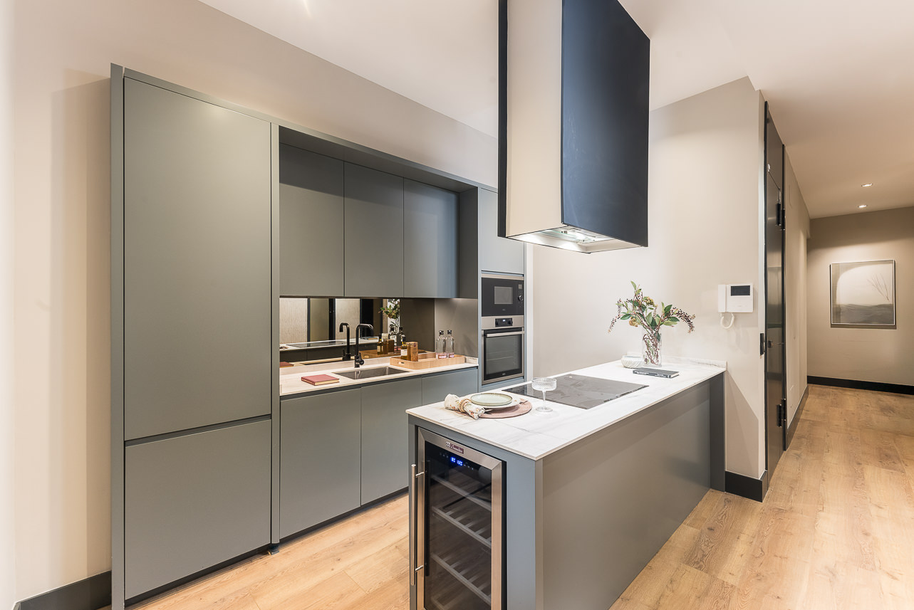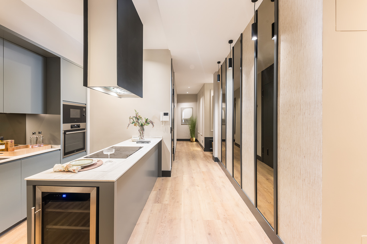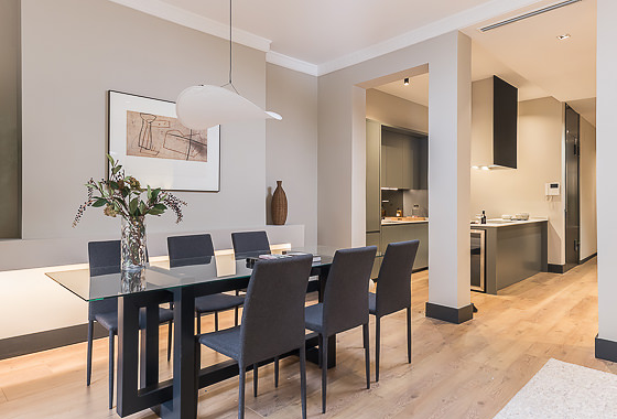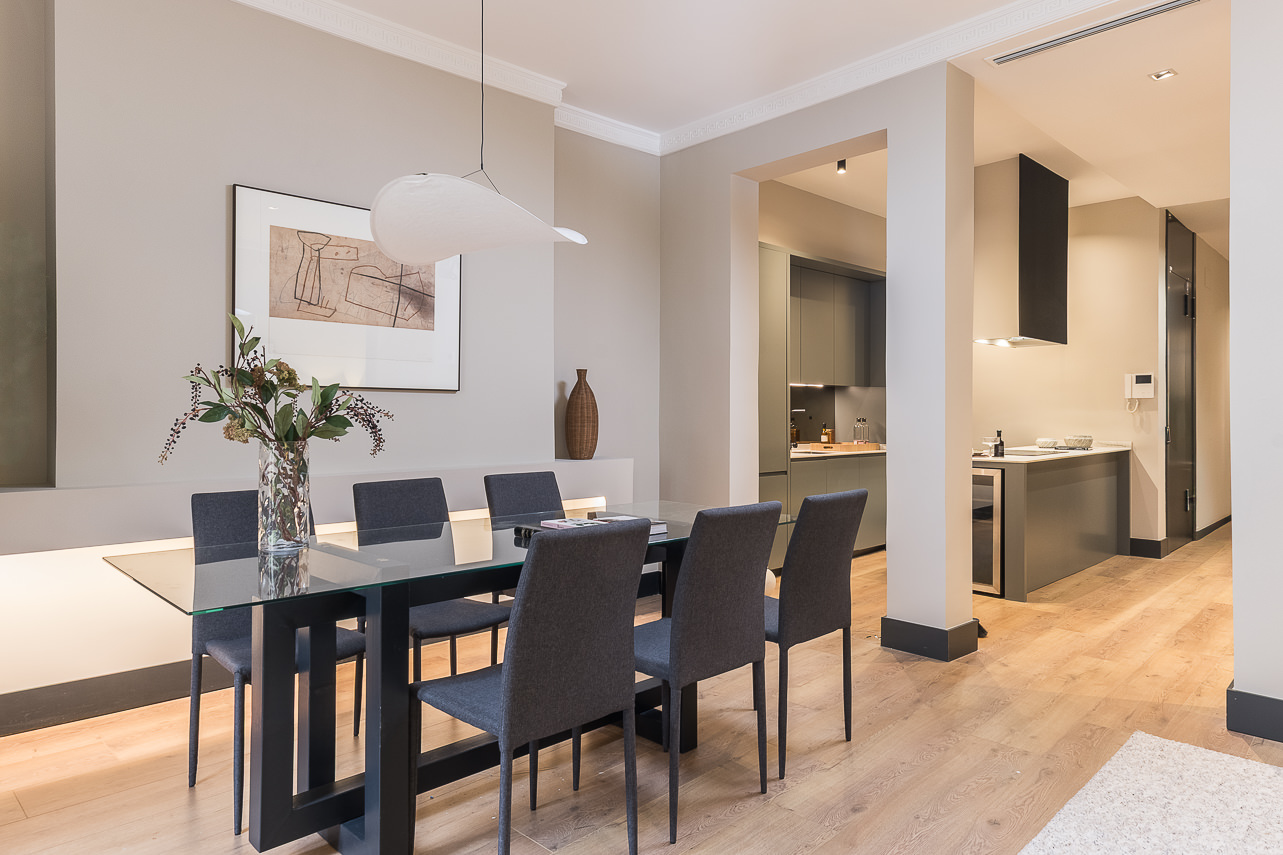 Located on the second floor of a stately building on Calle Padilla, this 120 m² apartment combines modern style and comfort in every detail. Thoughtfully decorated by our Homeclub interior design team, it blends contemporary design with warm, welcoming touches: natural wood floors, an exposed brick wall framing the smart TV for an industrial flair, and modern furniture with light-toned textiles that create a bright and inviting atmosphere. The lighting has been carefully designed to evoke a tru… Read more