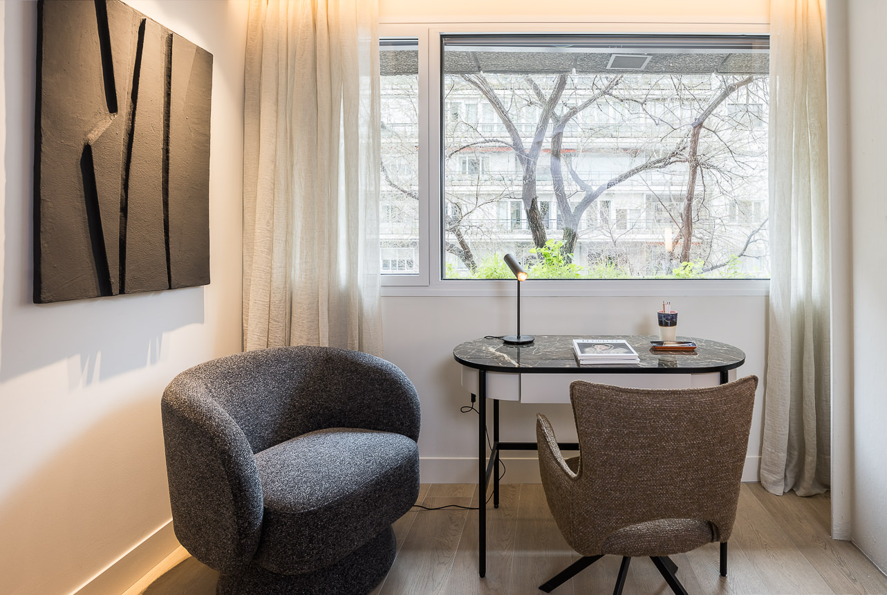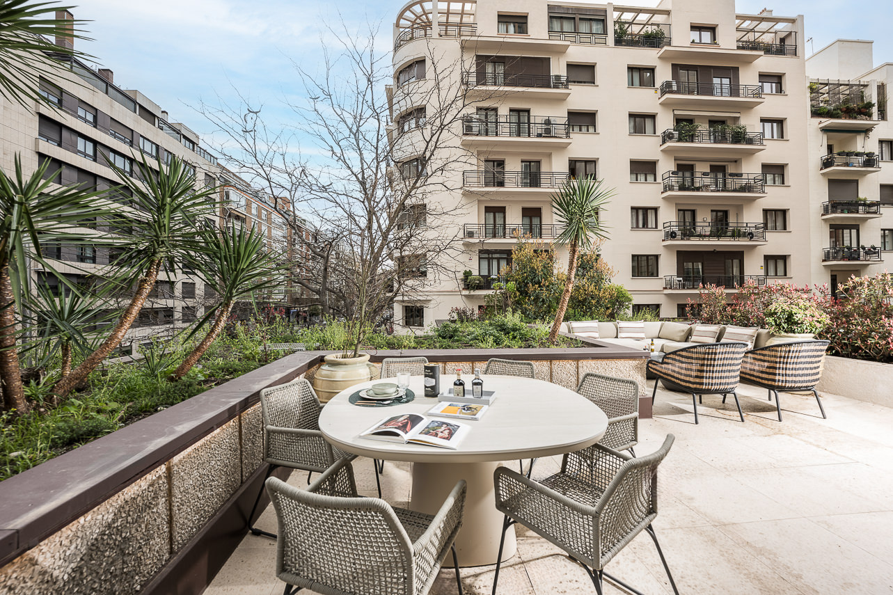 Located in the iconic Torre de Valencia, at the junction of Avenida de Menéndez Pelayo and Calle O’Donnell, this 180 m² flat with a 33 m² private terrace is situated on the second floor on the outer side of the building, next to the Retiro Park and Calle Goya. The building, one of the most iconic in the area, features a 24-hour concierge service and excellent transport links via the metro (Ibiza station) and the city’s main roads. The living area is organised as an open-plan space comb… Read more
