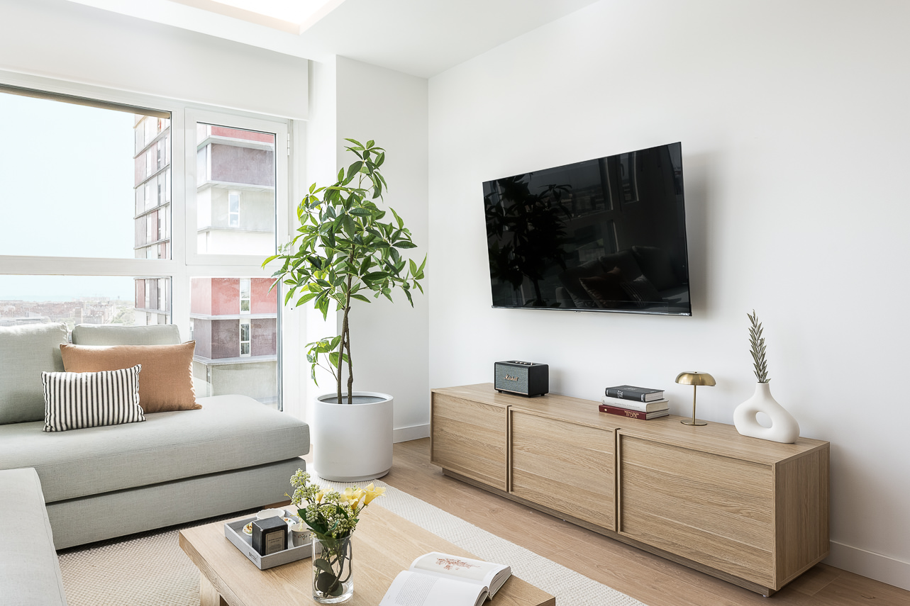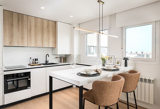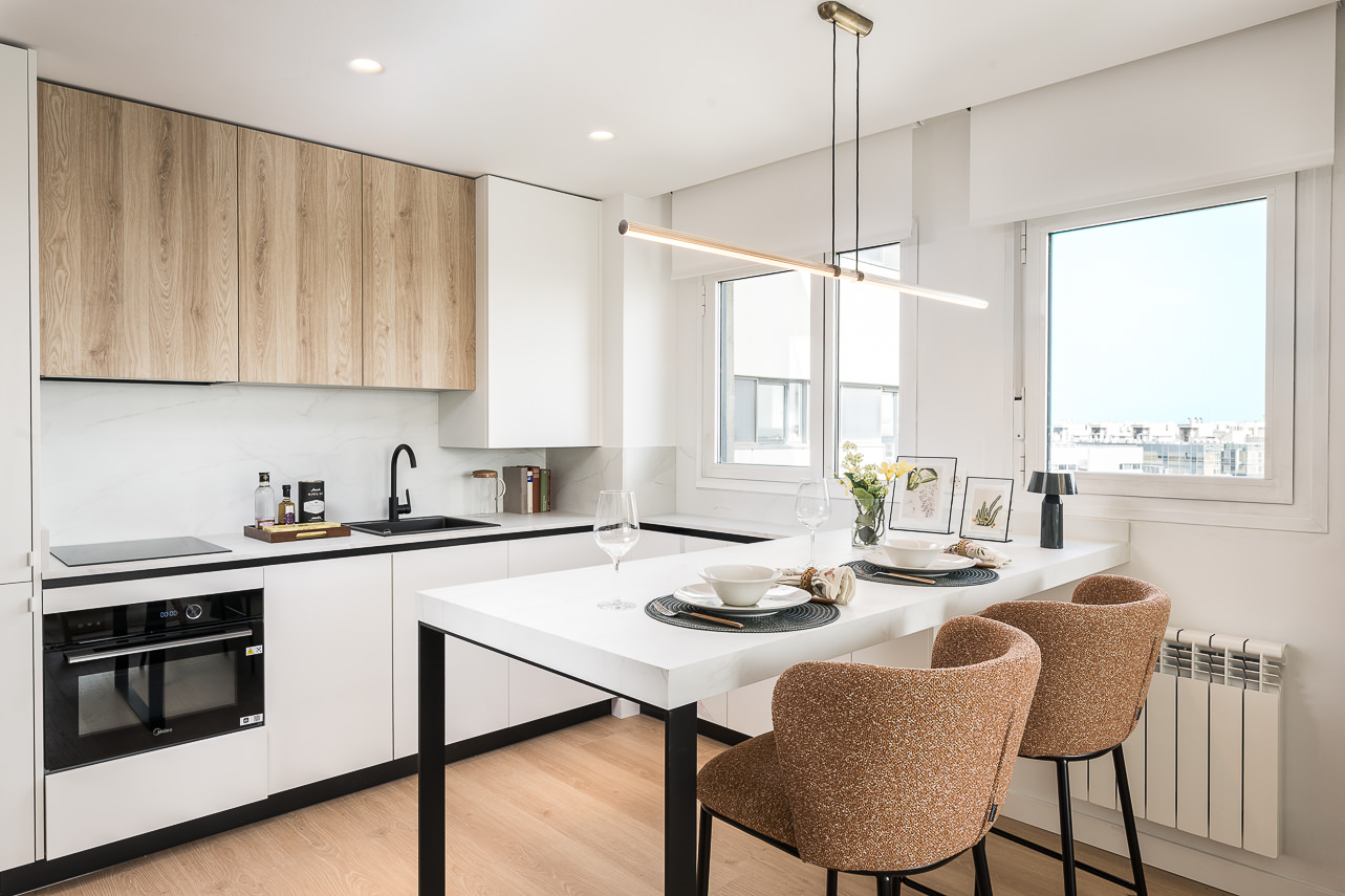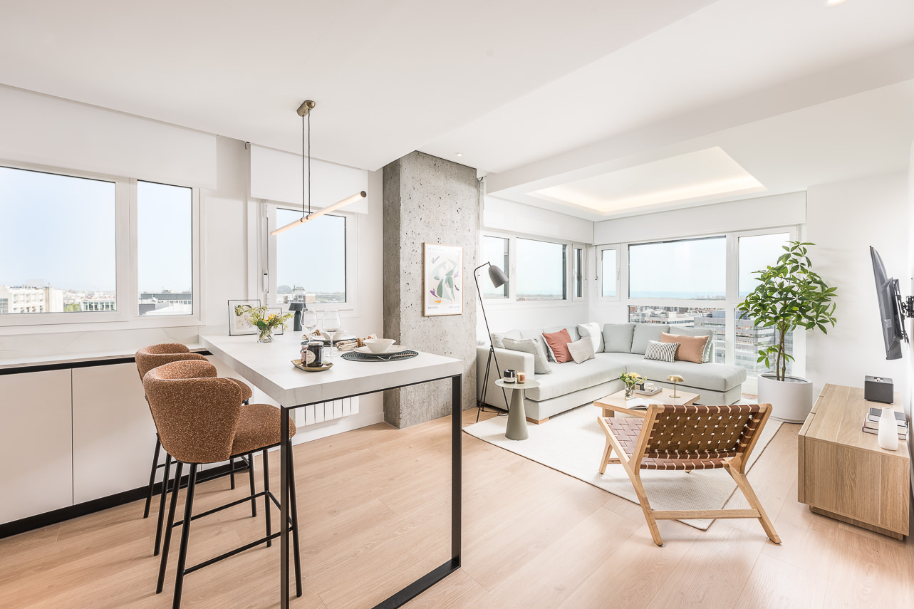 Located on Dulce Chacón Street, on a 10th exterior floor, this property stands out for its abundant natural light and open views, in a quiet and well-connected residential area in northern Madrid. Its height and orientation allow for natural light throughout the day, creating a particularly pleasant atmosphere. With 68 m², the apartment has been recently renovated and features a Homeclub Design interior project, where every detail has been carefully considered to create a modern, functional… Read more