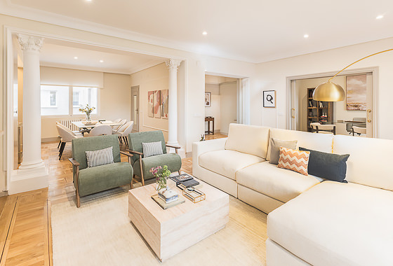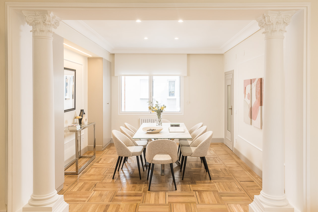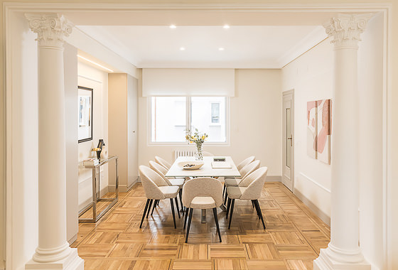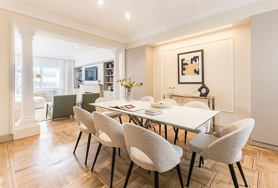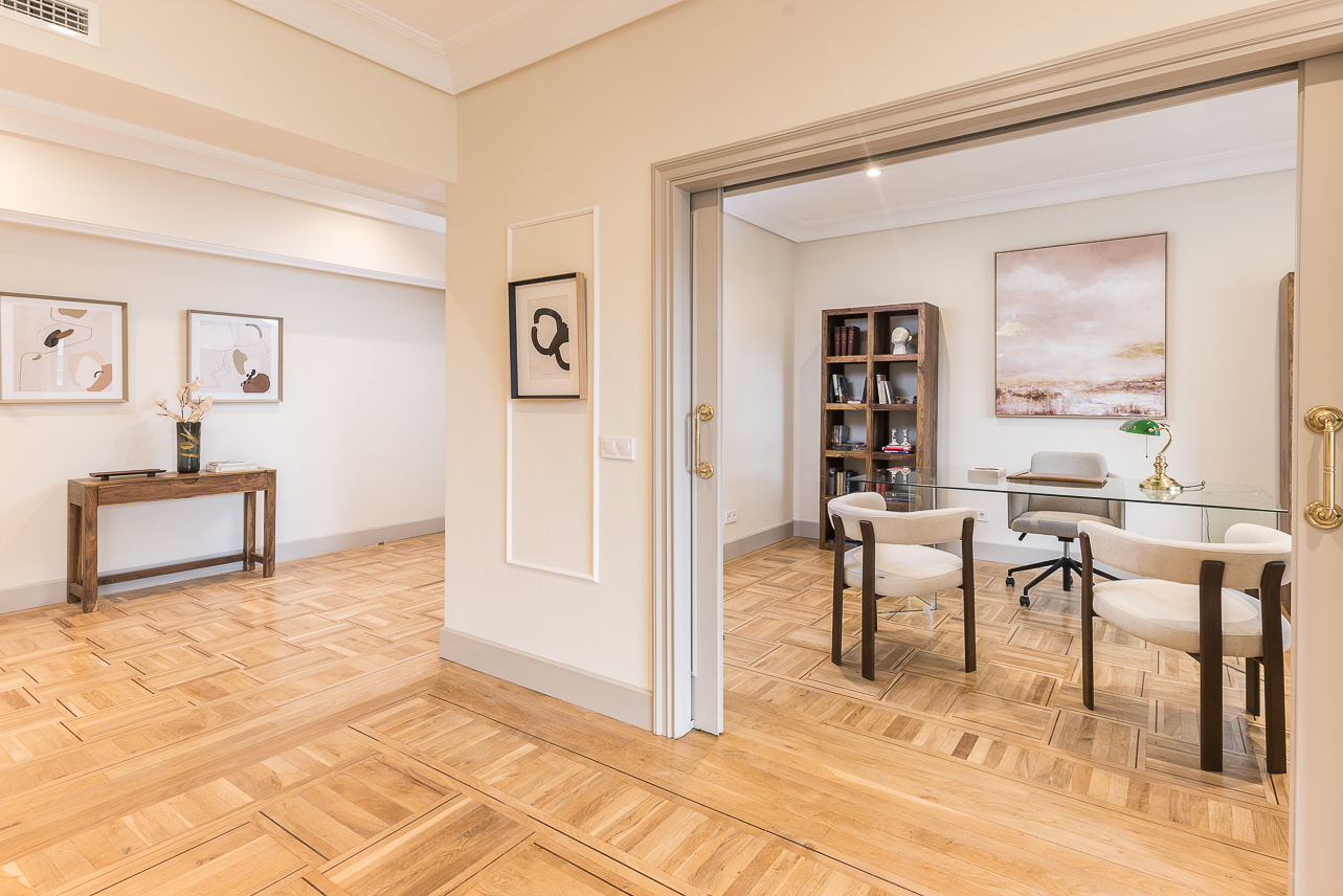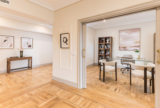 Located on Núñez de Balboa Street, this newly renovated 220 m² property is on the fifth floor of a stately building with a concierge, right in the heart of Lista/Castellana, one of the most exclusive and safest areas in the Salamanca neighbourhood. The living area is organised around an entrance hall which leads, on the right, to a study with a sliding door that adds versatility to the space, and to the living room with access to a large terrace equipped with automatic awnings. The separat… Read more