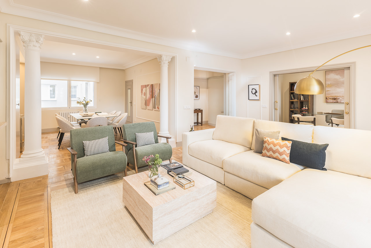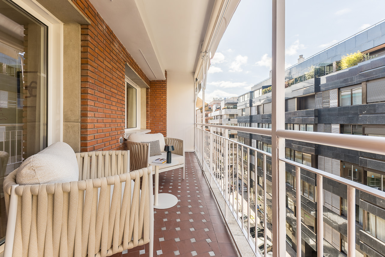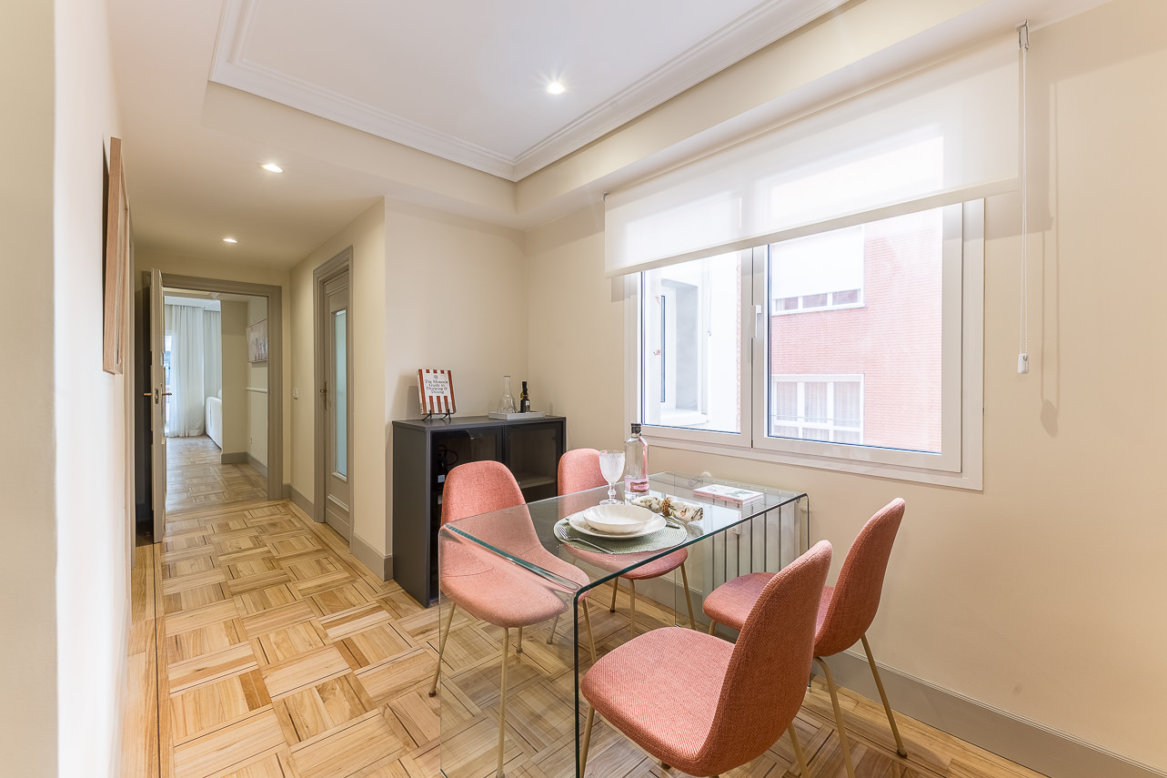 Located on Núñez de Balboa Street, this newly renovated 220 m² property is on the fifth floor of a stately building with a concierge, right in the heart of Lista/Castellana, one of the most exclusive and safest areas in the Salamanca neighbourhood. The living area is organised around an entrance hall which leads, on the right, to a study with a sliding door that adds versatility to the space, and to the living room with access to a large terrace equipped with automatic awnings. The separat… Read more