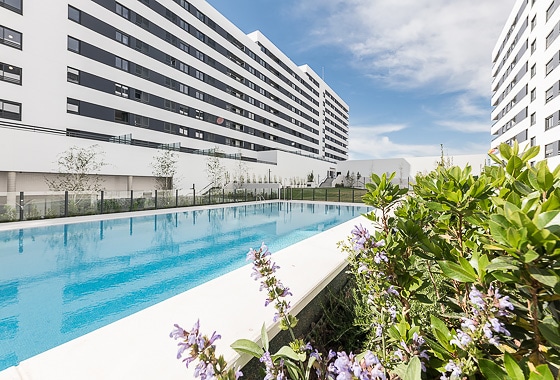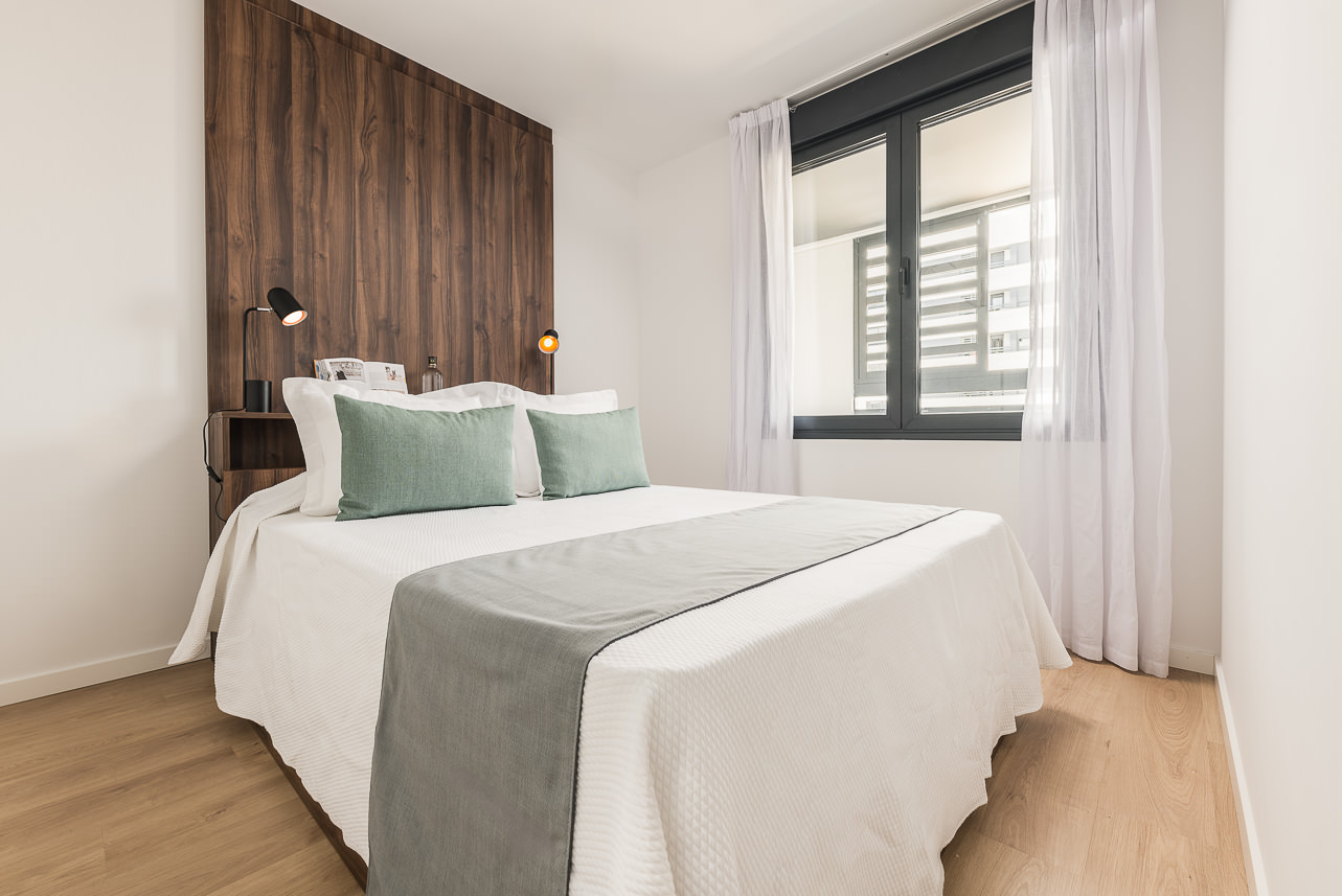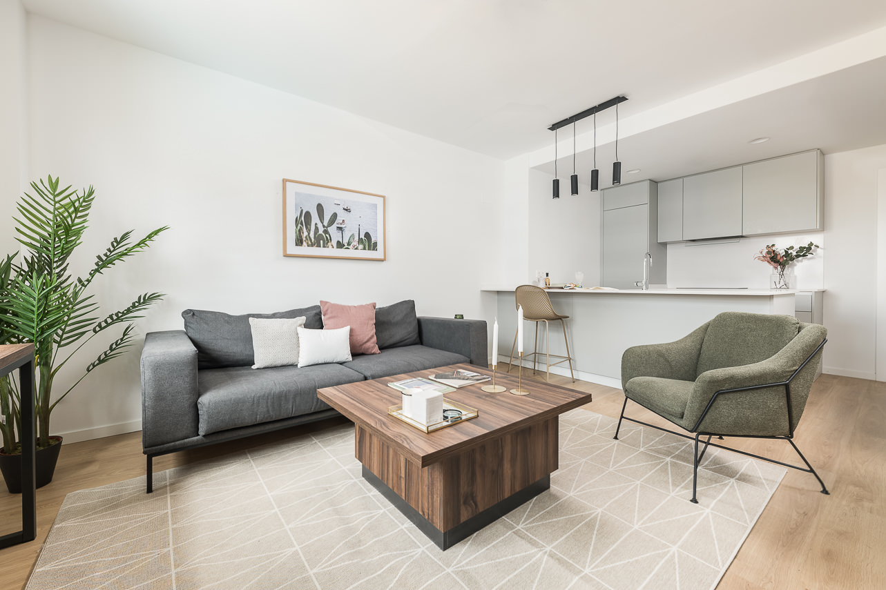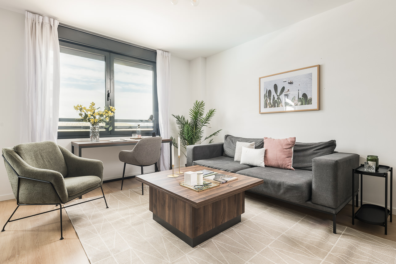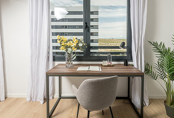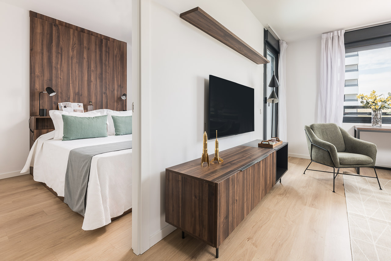 Discover your perfect home in this one-bedroom apartment within the exclusive Homeclub Living Valdebebas complex. Here you will have access to a variety of common areas such as a rooftop terrace, gym, restaurant, cafe, garden, and large swimming pool. Our interior design team has carefully selected every detail of this apartment’s design to create a cozy and welcoming space in which warm tones and natural materials are prominent. In addition, the kitchen and living room feature an open-concept… Read more