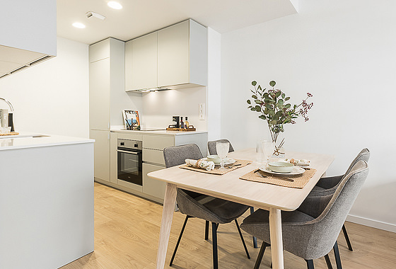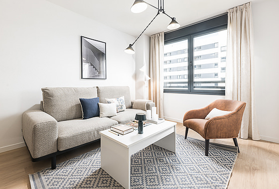 This fully furnished apartment is located inside the exclusive Homeclub Living Valdebebas complex, here you will have access to a variety of common areas such as a gym, rooftop terrace, restaurant, cafe, gardens, and a large swimming pool. Inside the apartment itself, the kitchen and living room come together with an open-concept design that allows you to make the most of the space. In this residence, every detail has been carefully selected creating a cozy design where you will feel at home fro… Read more