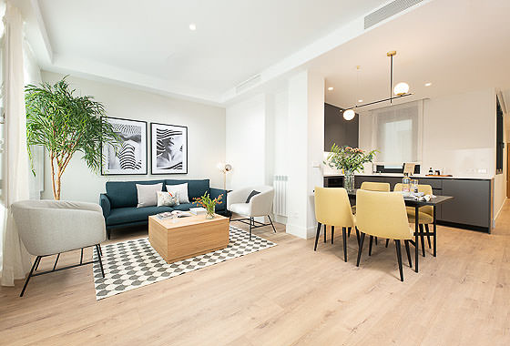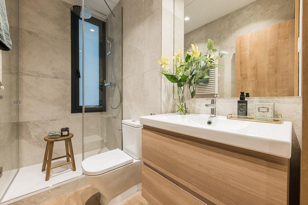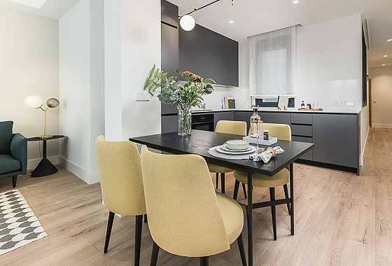 Located in a newly renovated building, this wonderful two-bedroom apartment stands out for its modern and functional design, ensuring a comfortable and pleasant stay in Madrid. Every detail has been carefully chosen by a team of expert interior designers, who have created an elegant and contemporary space. The combination of dark furniture with neutral tones adds a touch of sophistication and warmth to every corner of the home. Additionally, the building features a spacious communal rooftop, off… Read more