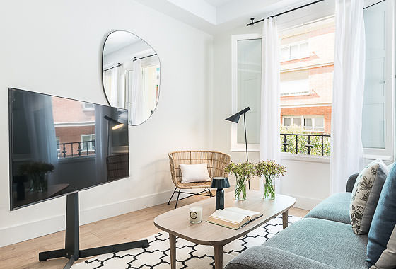 This apartment is fantastic for anyone looking to experience Madrid like a local while staying in a stylish home featuring a bright and contemporary design. Completely renovated in 2022, building tenants share a spacious rooftop terrace and enjoy less than a five-minute walk to the iconic El Retiro park. Our professional interior design team has expertly styled this space using cool tones and warm wood accents to make the space feel inviting. This apartment also comes fully furnished with premiu… Read more